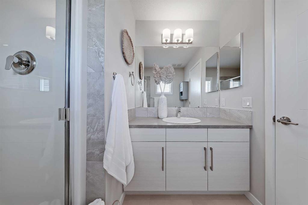 Upstairs, the private living quarters are smartly arranged. The primary suite is bright and inviting, complete with a walk-in closet and a well-appointed ensuite featuring a glass-enclosed shower and contemporary finishes. Two additional bedrooms provide excellent versatility for family, guests, or a dedicated home office, all supported by a full four-piece bathroom. Thoughtful proportions and natural light continue throughout the upper level, creating a sense of space rarely found in townhome living.