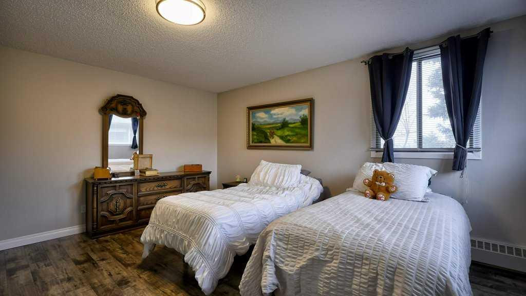 This top-floor, end-unit condo offers the ideal combination of space, privacy, and style. The spacious living and dining areas feature a cozy wood-burning fireplace with a gas log lighter, creating a warm and inviting atmosphere. Step outside onto the large deck, where you can relax and enjoy views of mature trees that provide extra privacy and tranquility. The kitchen is generously sized, perfect for preparing meals and hosting guests. Two well-appointed bedrooms include a master suite with a newly updated 3-piece ensuite. An additional 4-piece bathroom and a convenient in-suite laundry room complete the space. With updated laminate and tile flooring throughout, this condo offers a modern, fresh feel that's easy to maintain. The well-maintained building offers a range of excellent amenities, including a stunning lobby with a fireplace and sitting area, a fitness room with a sauna, a games room with shuffleboard and billiards, and a wonderful social lounge with a fully equipped kitchen and weekly coffee club. The library, meeting room, exterior sun deck, and lounge area provide even more opportunities to unwind and socialize. Additional perks include storage lockers and a very active volunteer group organizing social activities year-round. Bayshore Park is not only a great real estate investment but also a fantastic lifestyle choice. The professionally managed 25+ adult complex (no pets allowed) is nestled between Oakridge and Palliser, just steps away from the beautiful pathways at Glenmore Reservoir. You'll also find plenty of nearby amenities, including restaurants, medical offices, Co-op, Safeway, and more. Pick your possession date and move right in—this one won’t last long!