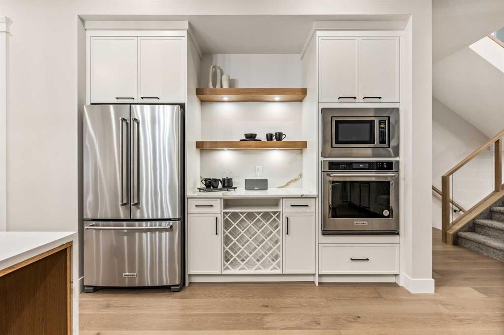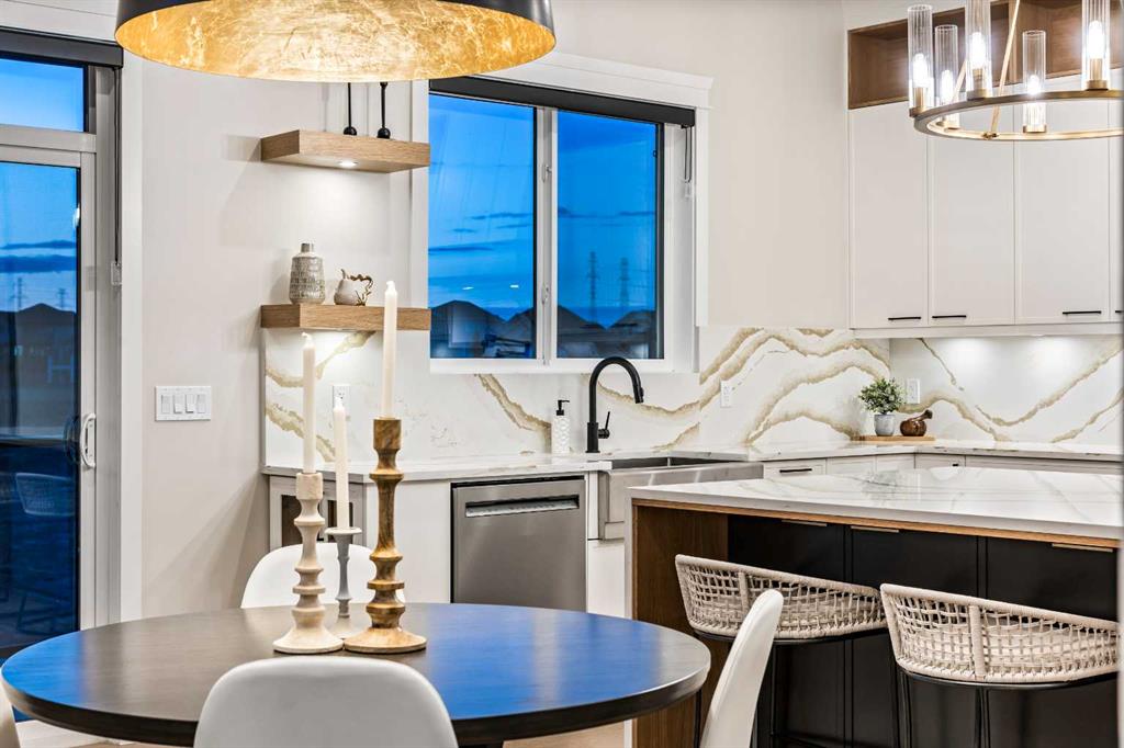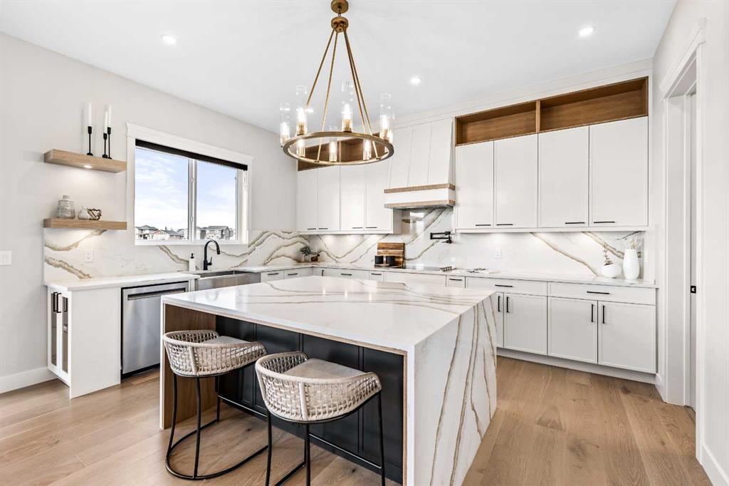 Situated in a tranquil lakeside neighborhood, this stunning two-storey show home offers 6 bedrooms, 5 full bathrooms, and a fully developed basement, all set on a premium lot. The main level features soaring 10-foot ceilings, rich hardwood floors, quartz surfaces, a stylish living room with a feature wall, a private den or office, and a dedicated spice kitchen equipped with a gas range, hood fan, fridge, and dishwasher. The upgraded main kitchen is highlighted by a waterfall island and built-in KitchenAid appliances.
