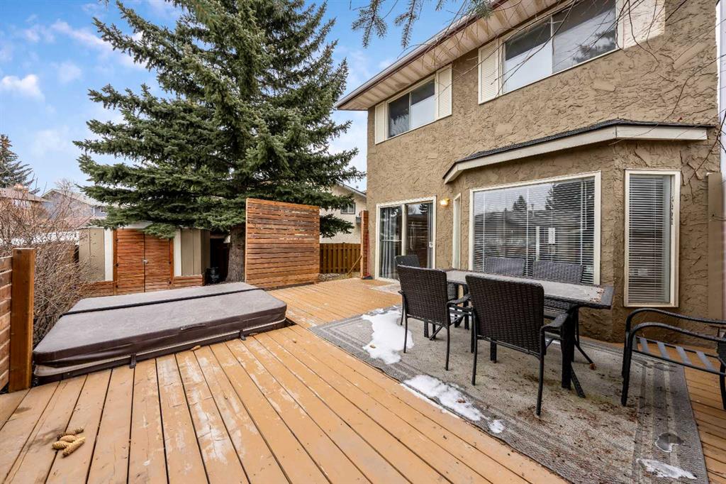 Step outside and unwind in your private backyard featuring a spacious deck with built-in hot tub—perfect for relaxing evenings or entertaining. Rear alley access also provides future potential for a single garage or carport (check with City for requirements).