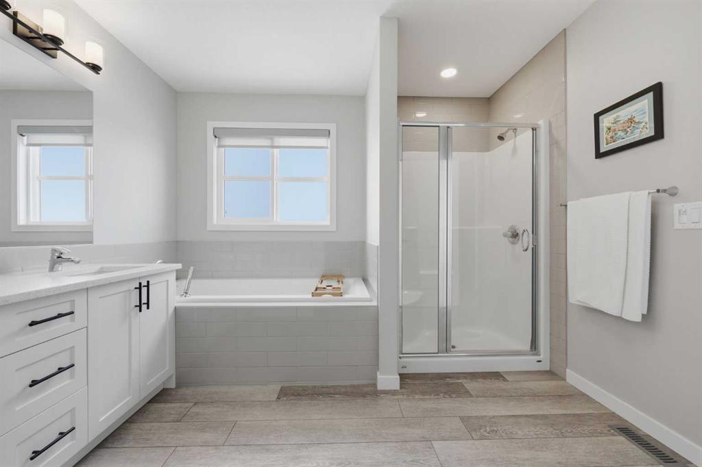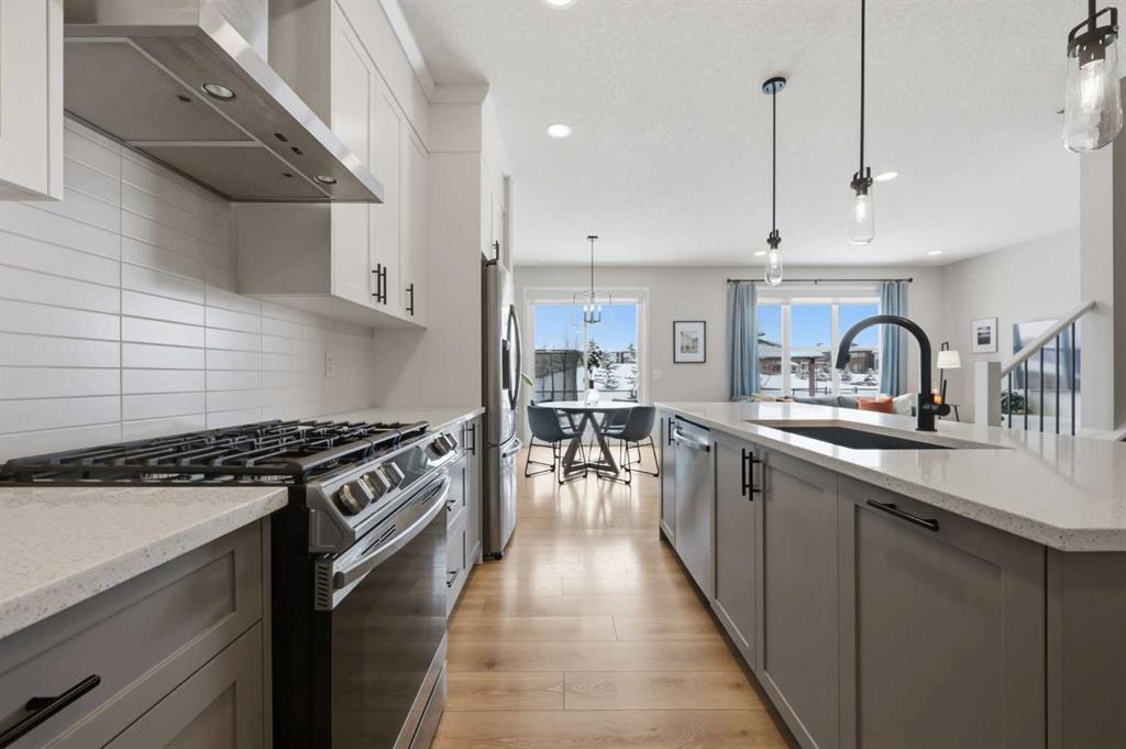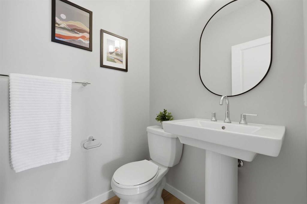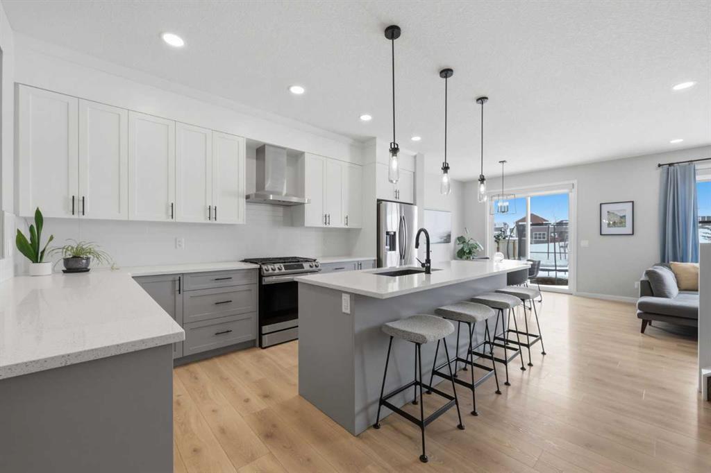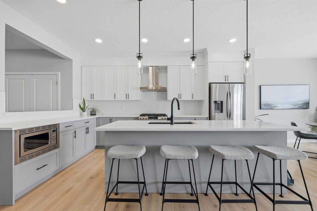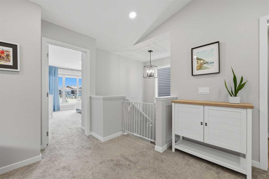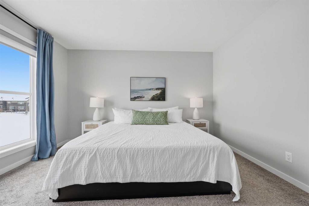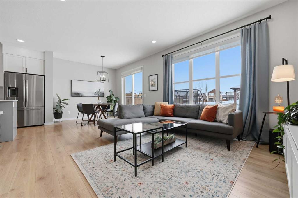 Welcome to Carrington—one of Calgary’s most exciting and thoughtfully planned communities, surrounded by 65 acres of green space, scenic ponds, playgrounds, and direct access to the incredible 138 km Rotary/Mattamy Greenway trail system. This gorgeous 4-bedroom home is perfectly positioned backing onto peaceful greenspace, offering both privacy and beautiful natural views. Inside, you’ll immediately notice the abundance of natural sunlight streaming through the large windows, creating a bright and inviting atmosphere throughout, along with the added comfort of air conditioning. The open-concept main floor is designed for both everyday living and entertaining, featuring a seamless flow between the living room, dining area, and kitchen. A versatile main floor den—easily used as a fifth bedroom—provides the perfect space for guests, a home office, or a quiet retreat, while the conveniently located half bath sits just off the mudroom for added functionality. Upstairs, a spacious bonus room thoughtfully separates the primary suite from the two secondary bedrooms—ideal for families wanting both connection and privacy. The primary bedroom is truly impressive in size and offers a spa-inspired ensuite complete with dual sinks, a large soaker tub, separate shower, private water closet, and a generous walk-in closet. This home has another year left on the build envelop warranty and another 5 year structural beyond that! Carrington continues to grow with exciting future amenities including planned school sites, expanded commercial development, and a future stop along the Green Line LRT—making this an excellent opportunity for both lifestyle and long-term value. Located just 15 minutes from CrossIron Mills, Costco, and Airdrie, you’ll enjoy convenient access to shopping, dining, and everyday essentials while still being tucked into a quiet, nature-filled community.