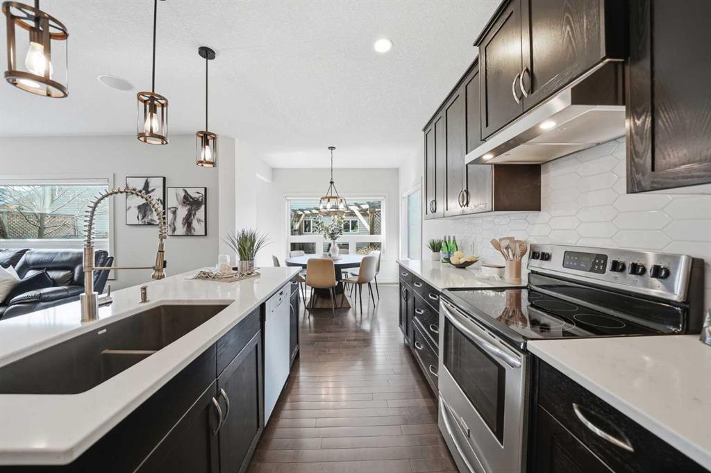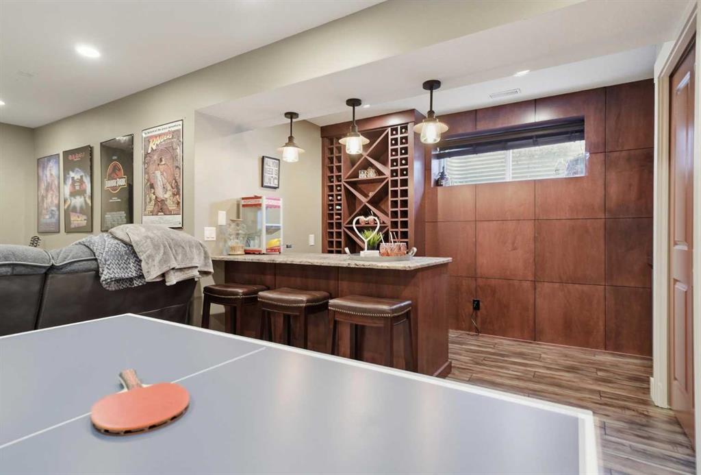 If you’ve been searching for a home in McKenzie Towne that truly stands out, this one is ready to impress. This beautifully maintained detached home offers over 3,000 sq ft of fully finished living space, thoughtfully designed to balance comfort, function, and everyday living. The main level features a bright, open layout with a spacious living room centered around a cozy gas fireplace. The kitchen is the true focal point of the home, complete with a large island, pantry, quartz countertops, new backsplash, and a modern hood fan — ideal for both daily use and hosting. A generous dining nook flows seamlessly off the kitchen, while the front room offers flexibility as a home office, formal dining area, or additional sitting space. A conveniently located laundry room adds to the practicality of the main floor. Upstairs, the layout continues to impress with a versatile bonus room that opens onto a private balcony — a perfect place to unwind. The primary bedroom is spacious and comfortable, featuring a newer triple pane window for added efficiency and quiet, along with a 4-piece ensuite including a soaker tub, stand-up shower, and walk-in closet. Two additional bedrooms and a full bathroom provide great space for family or guests. The fully developed basement offers exceptional versatility, featuring a large recreation and theatre area with a built-in speaker system, creating the perfect setup for movie nights or entertaining. A custom bar with mini fridge, wine rack, and seating area adds to the experience, along with an additional bedroom and a full bathroom with a stand-up shower.