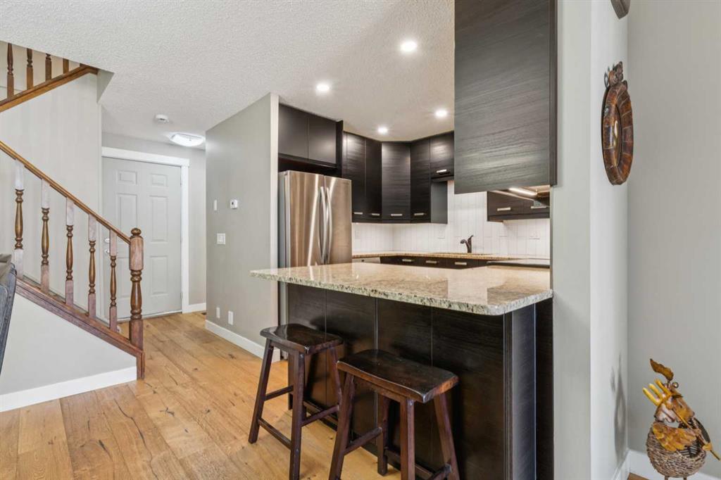 *PLEASE NOTE OPEN HOUSE HAS BEEN CANCELLED*Experience this rare opportunity to live in TIFFANY LANE, the highly desirable and unique townhome complex that captures and creates the charm and serenity of a mountain retreat in the city—right in the heart of the vibrant community of Woodbine! This exceptional home is a private sanctuary, offering over 1,920 square feet of beautifully renovated living space across three levels, blending tranquillity, modern luxury and convenience. Step into the bright, inviting foyer that opens to the warm, open-concept main floor, filled with natural light and rich, wide-plank hardwood flooring. The stunning vaulted ceiling living room, anchored by a cozy Napoleon gas fireplace, creates the perfect setting for both entertaining and relaxing evenings at home. The gourmet kitchen features abundant cabinetry, granite countertops, stainless steel appliances, under-cabinet lighting, and a sit-down breakfast bar with additional storage. A spacious dining room easily accommodates both everyday living and larger gatherings. Upstairs, the luxurious primary suite offers a peaceful retreat with dual closets and a stylish three-piece ensuite. The second oversized bedroom and the full bathroom with a soaker tub provide ample space for family or guests. The large loft is ideal for a home office or an additional lounge area. Triple-pane windows on the upper level offer enhanced energy efficiency, added comfort, and quiet living. The fully developed basement expands the living space with a large recreation room—perfect for a home gym, media room, or guest space—along with excellent storage. Outside, enjoy the private, treed, fully fenced front patio surrounded by nature. Ideal for summer BBQs with a gas hookup and relaxing at the end of the day. A double attached garage adds everyday convenience, complete with built-in storage. Ideally located just steps from the full amenities of Woodbine Square. Walk to Fish Creek Park - one of North America’s largest urban parks with access to kilometres of scenic walking and biking trails. It is also close to transit and has easy access to Stony Trail. A fantastic opportunity you do not want to miss! Love where you live!