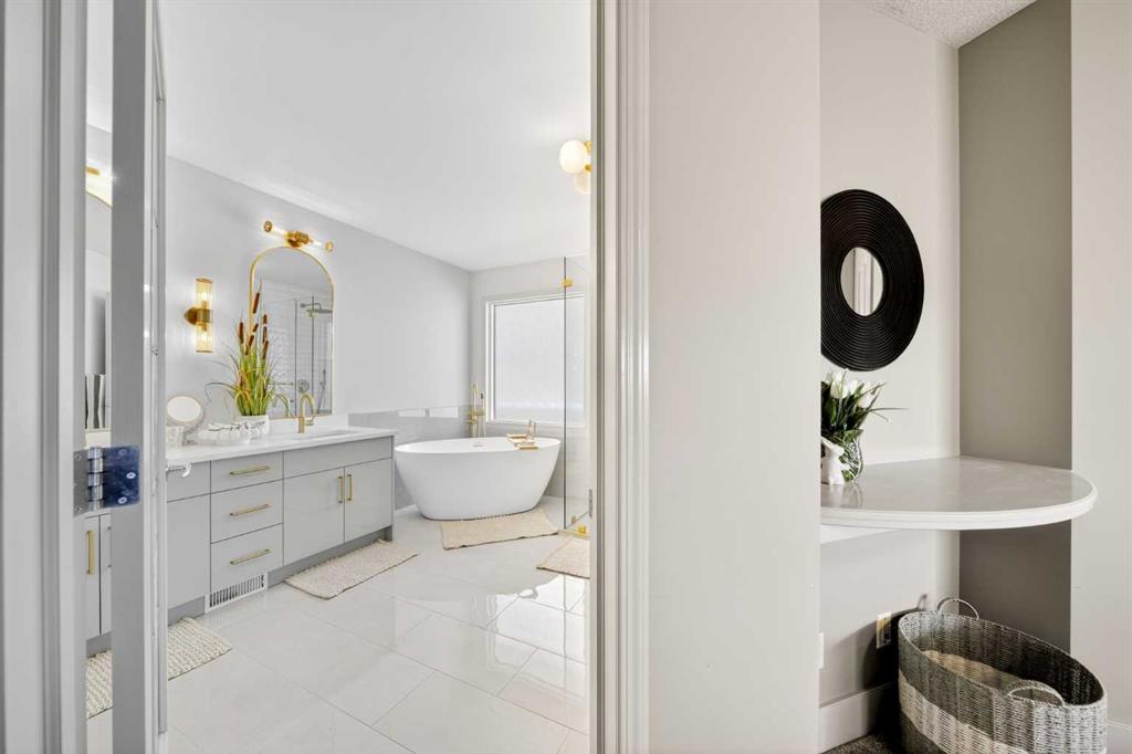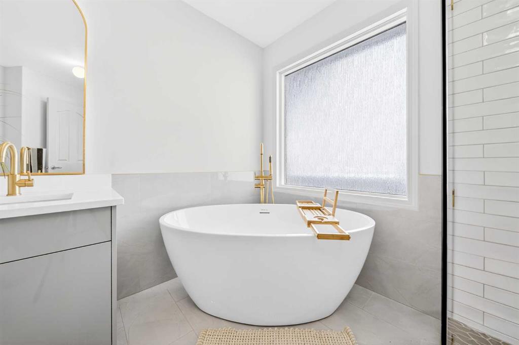 Upstairs, the primary suite is a true escape, highlighted by a newly renovated spa-inspired 5-piece ensuite with a freestanding soaker tub, glass-enclosed walk-in shower, double vanity, and refined designer finishes. Three additional bedrooms and a beautifully updated 4-piece bathroom complete the upper level.