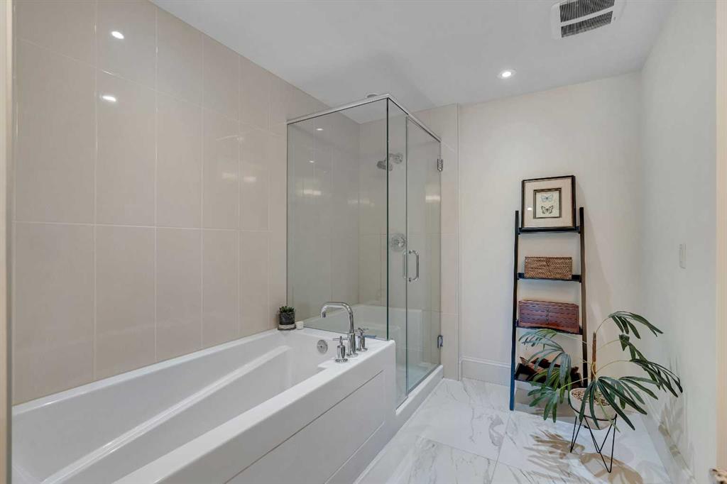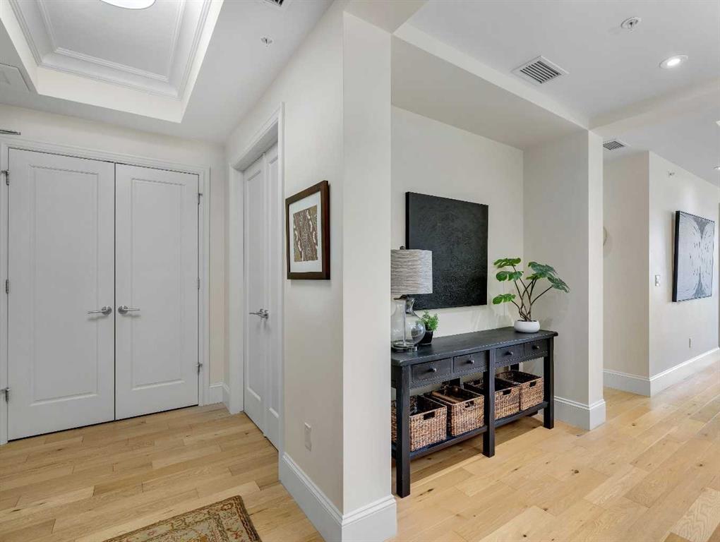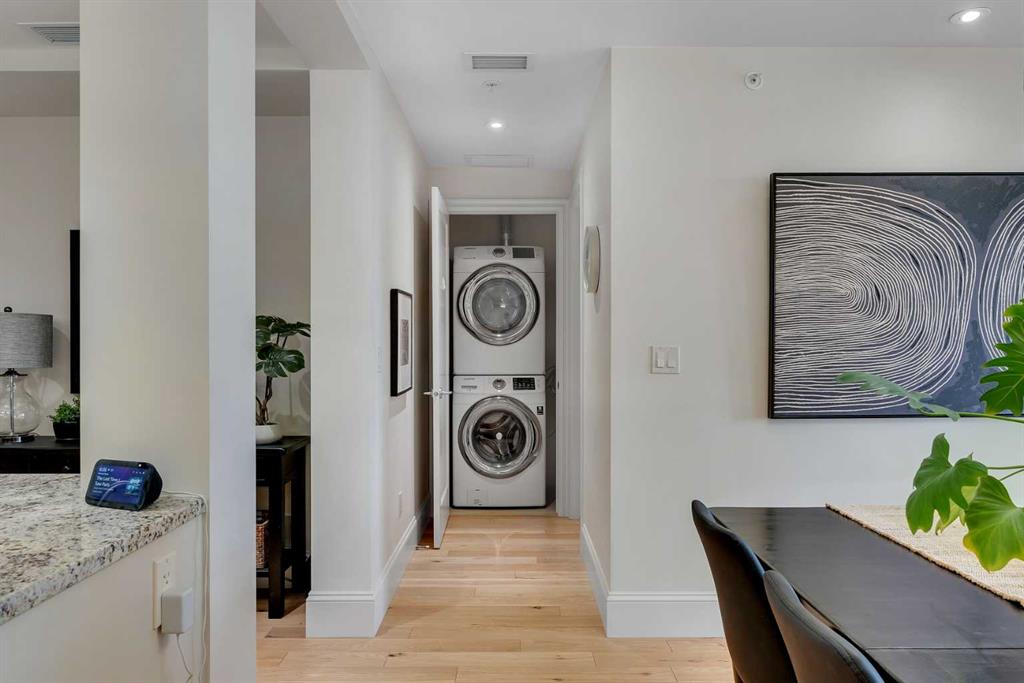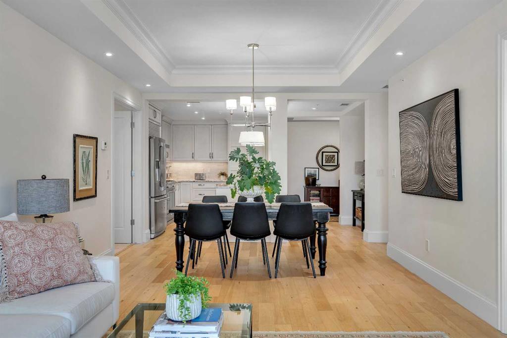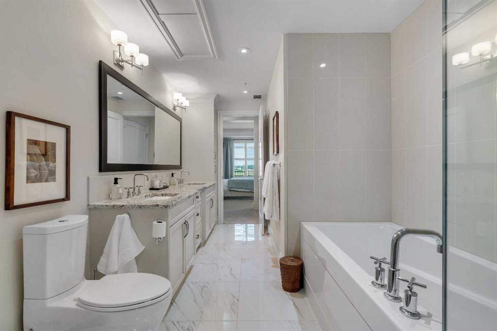 The expansive primary suite easily accommodates a king-sized bed and additional furniture, and includes a walk-in closet and a luxurious 5-piece ensuite with double sinks, a soaker tub, and a glass-enclosed shower. A second bedroom is positioned on the opposite side of the unit for added privacy and is adjacent to a stylish 4-piece bath. The separate den makes an ideal home office or flex space. Additional features include wide plank hardwood flooring throughout the main living areas, tray ceilings with pot lighting in the dining and living rooms, central A/C, and upgraded window shutters. This unit also includes a titled oversized underground parking stall and a titled storage locker. Champagne is a pet-friendly, exceptionally maintained building offering amenities such as a two-bay car wash, secure bike storage, and ample visitor parking. The location is unbeatable—just steps from the Bow River pathway system, Carburn Park, Sue Higgins Park, and all the amenities of Quarry Park, including the YMCA, shops, restaurants, and more. With quick access to major routes, commuting is easy and convenient. Don’t miss out on this opportunity!