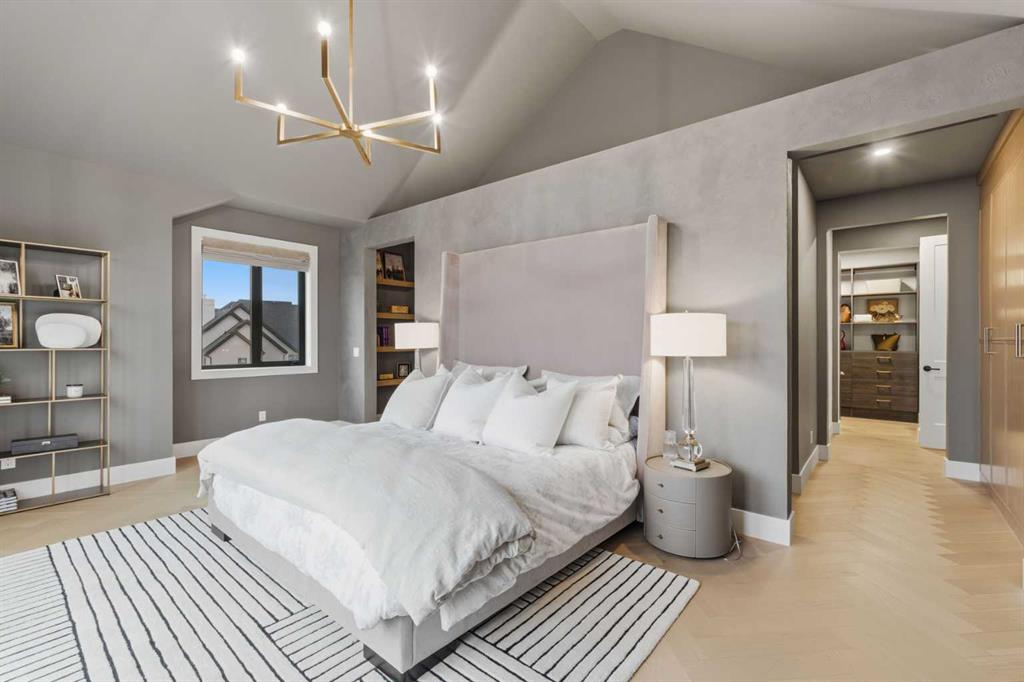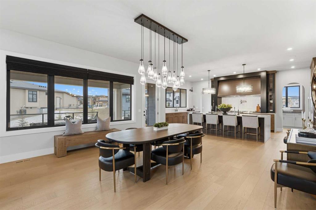A rare opportunity to own a former Crystal Creek LOTTERY HOME in Watermark, offered FULLY FURNISHED and completely turn key, where every detail has been professionally curated and included. Set on a large lot with a sunny south facing backyard, this 5,652 sq ft fully developed luxury home with triple car garage makes an immediate impression. Soaring open to above ceilings, full height windows, and a statement fireplace define the main living space. The main level flows effortlessly through a designer kitchen with oversized island, premium appliances, butler’s pantry, and an elegant dining area framed by architectural arches and custom lighting, while a private office, functional mudroom, and thoughtful storage round out the floor. Upstairs, the primary retreat feels like a boutique hotel, complete with a spa inspired ensuite with in-floor heating, freestanding tub, oversized shower, fully built out walk in closet, and a private balcony overlooking the south facing yard, a quiet spot for morning coffee or winding down at the end of the day. Additional bedrooms offer their own character and access to ensuites, while the upper lounge overlooks the great room below, creating a bright and open second living space. The fully developed basement is designed for entertaining with a large rec room, bar, gym or flex space, and guest bedroom. Built for comfort and efficiency, this home features dual furnaces, dual A/C units, tankless hot water, HRV system, water softener, audio system, Wi-Fi extenders and full new home warranty coverage for complete peace of mind. Outside, the property features Gemstone lights, is fully landscaped with irrigation system and ready to enjoy from day one. Located just outside Calgary, the prestigious community of Watermark offers estate living with quick access to the city, mountain views, pathways, and a level of privacy that is increasingly hard to find. Homes of this caliber, fully finished and furnished, rarely become available. Book your private showing and experience it in person.