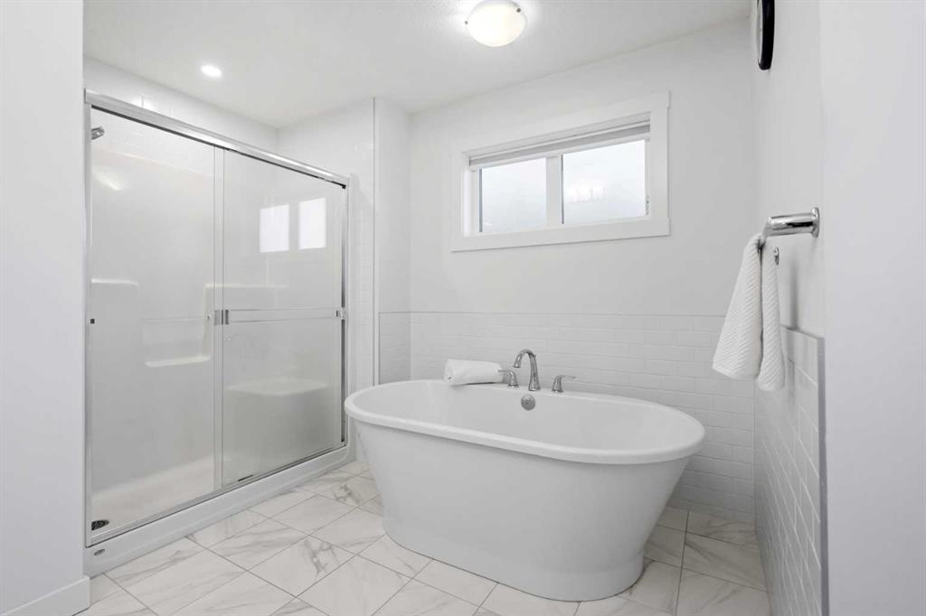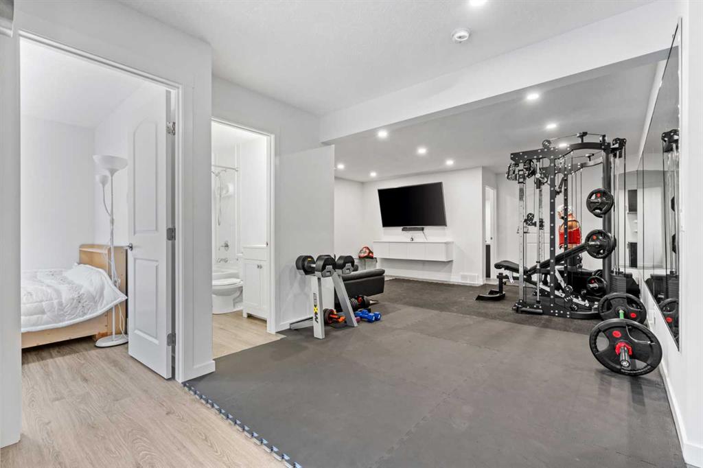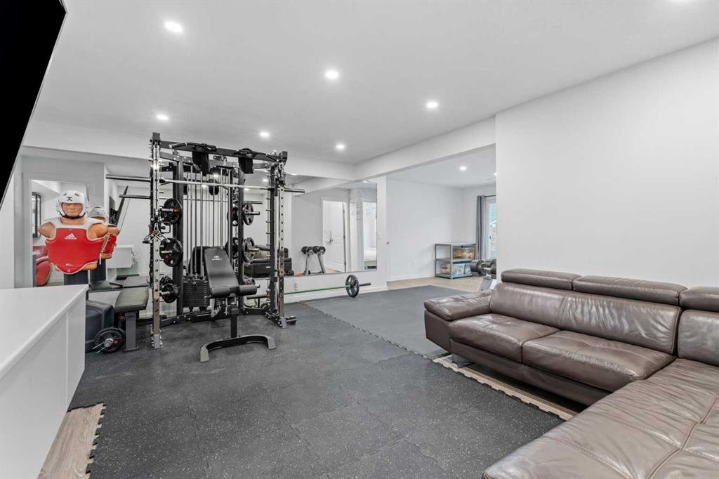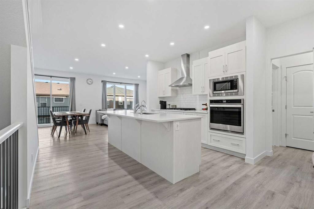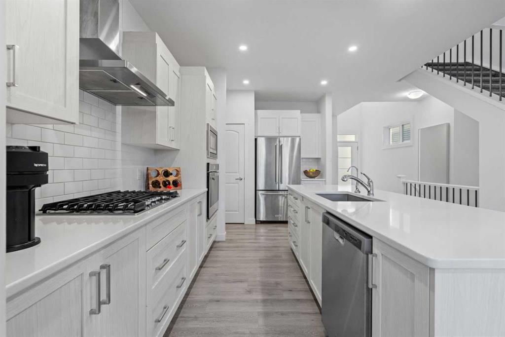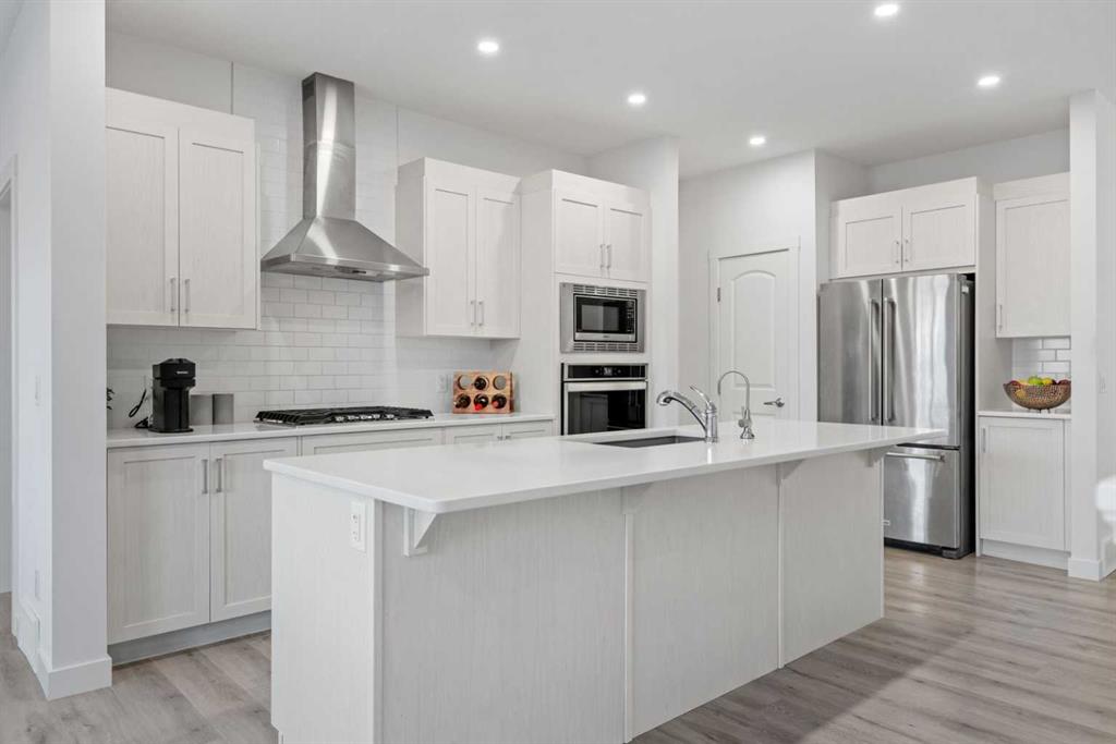 Welcome to this fully FULLY FINISHED WALKOUT BASEMENT home in the heart of Sage Hill, offering over 3,200 sq. ft. of total living space (including the basement). A spacious and inviting foyer sets the tone as you step inside, with clear sightlines guiding you to the bright, open-concept main living area at the rear of the home. Expansive windows fill the space with natural light throughout the day. The main floor features 9-foot ceilings, pot lights, and a dedicated office—ideal for working from home or a quiet study space. At the heart of the home is a chef-inspired kitchen that seamlessly blends style and practicality, showcasing a large central island, chimney-style hood fan, built-in wall oven and microwave, and a gas cooktop. The adjacent dining nook opens onto a deck with a gas BBQ line, extending your living space outdoors. Completing the main level are a functional mudroom with added storage shelving, connecting directly to the double attached garage with overhead storage & built-in shelving. Upstairs, upgraded metal railings lead to a thoughtfully designed second floor featuring three spacious bedrooms, a stunning VAULTED CEILING BONUS ROOM, and a main bathroom. The luxurious primary suite offers a private retreat with a spa-like ensuite (with Vaulted / High ceilings), including a soaker tub, standalone shower, dual vanities, and a generous walk-in closet with direct access to the separate laundry room, complete with a sink and extra storage. The professionally finished walkout basement adds outstanding flexibility, featuring a bedroom, full bathroom, office, recreation/exercise area, and ample storage, with direct access to a concrete patio beneath the deck. Additional upgrades include TRIPLE-PANES windows, central air conditioning, a water softener, water filtration, and an EXTERIOR HOT WATER TAP. Major recent updates include a NEW ROOF (2025), NEW SIDING (one side, 2025), and a NEW GARAGE DOOR (2025).