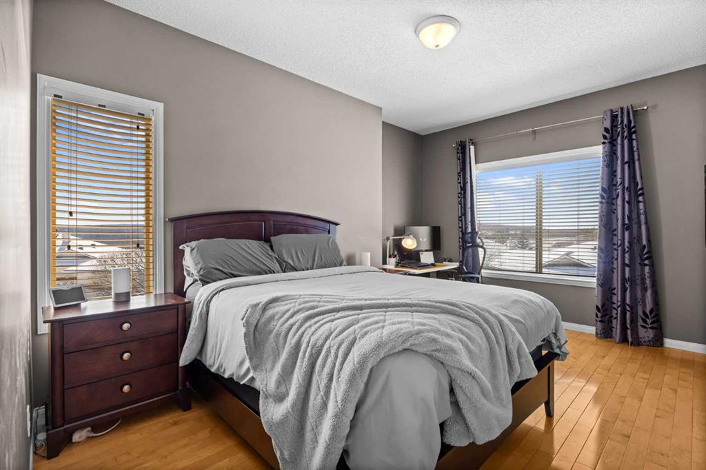 Upstairs, the home features two spacious primary bedrooms, each complete with its own ensuite bathroom and walk-in closet — perfect for guests, roommates, or a flexible family setup. Both rooms offer generous space and privacy, with one capturing those incredible mountain views.