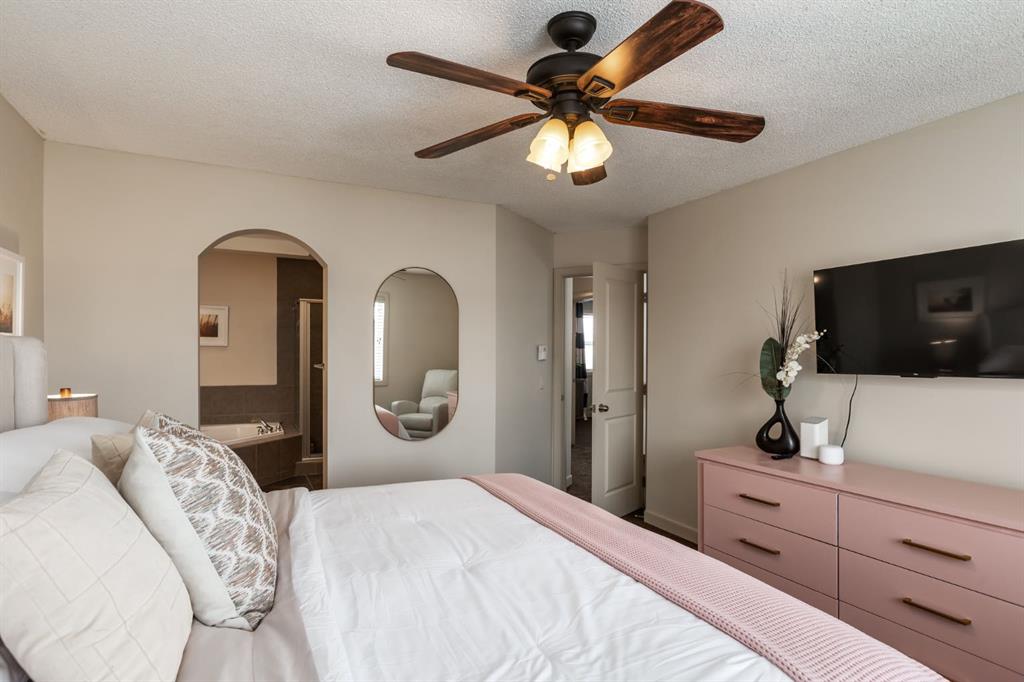 Upstairs, retreat to the spacious primary suite complete with a walk-in closet and a large, private ensuite designed for relaxation. Two additional generously sized bedrooms and an expansive bonus room provide the perfect space for growing families. The fully developed basement (2018) extends your living space with a large family room featuring a wet bar, an additional bedroom, full bathroom, and a dedicated area ideal for a home gym. Outside, enjoy a sun-filled south-facing backyard with a large deck and ample yard space—perfect for summer entertaining and family gatherings.