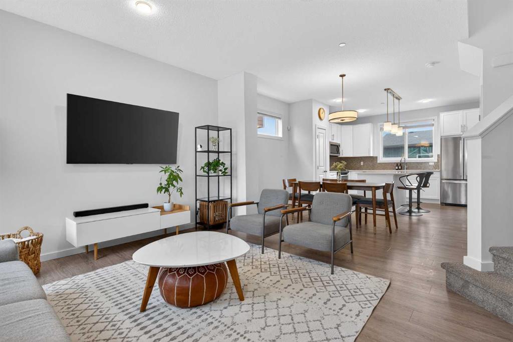 AMAZING TOWNHOME LIVING with NO CONDO FEES in the HIGHLY SOUGHT-AFTER, FAMILY-FRIENDLY Community of LIVINGSTON! This END UNIT offers the Perfect Blend of STYLE, SPACE, and CONVENIENCE. Step inside to a BRIGHT, MODERN OPEN-CONCEPT LAYOUT featuring HIGH CEILINGS, EXPANSIVE LIVING and DINING AREAS, and ABUNDANT NATURAL LIGHT throughout. The Main Floor is Ideal for both Everyday Living and Entertaining including the MODERN KITCHEN with QUARTZ COUNTERTOPS and STAINLESS-STEEL APPLIANCES, Back Mud Room, and 2-Piece Powder Room. Upstairs, ENJOY the SUPER CONVENIENT UPPER-FLOOR LAUNDRY and THREE GREAT-SIZED BEDROOMS, including a PEACEFUL PRIMARY RETREAT with an OVERSIZED WALK-IN SHOWER in the ENSUITE Designed for Relaxation, and an ADDITIONAL 4-Piece BATHROOM to round out the Upper Floor. The SIZEABLE Unfinished Basement offers EXCELLENT STORAGE and is Ready For Your Creative Development Ideas. Outside, you’ll love the FULLY FENCED and LANDSCAPED PRIVATE BACKYARD and the OVERSIZED DOUBLE DETACHED GARAGE — Perfectly Roomy for Vehicles and EVEN MORE ADDITIONAL STORAGE. JUST A 7-MINUTE WALK brings you to the INCREDIBLE **LIVINGSTON COMMUNITY CENTRE** Offering a Variety of Member Services such as: GYM FACILITIES with PROGRAMS FOR ACTIVE LIVING, SKATING RINKS, TENNIS COURTS, BADMINTON, SPLASH PARK, DAYCARE, EVENT ROOMS, and MORE! Known for it's 250 Acres of Open Space, as well as Parks, Prairies, the Greenway Trail Systems and Wetland Ponds --> LIVINGSTON COMMUNITY "Pairs the Best of Urban Life with the Serenity of the Natural World." City Transit is STEPS AWAY from this Townhome, and the QUICK DRIVE to MULTIPLE NEARBY AMENITIES such as Parks, Schools, Shops, Restaurants, and EASY ACCESS to Stoney Trail completes this EXCEPTIONAL OFFERING. Definitely a MUST-SEE. Your New Home Awaits! ** Book Your Private Showing Today **