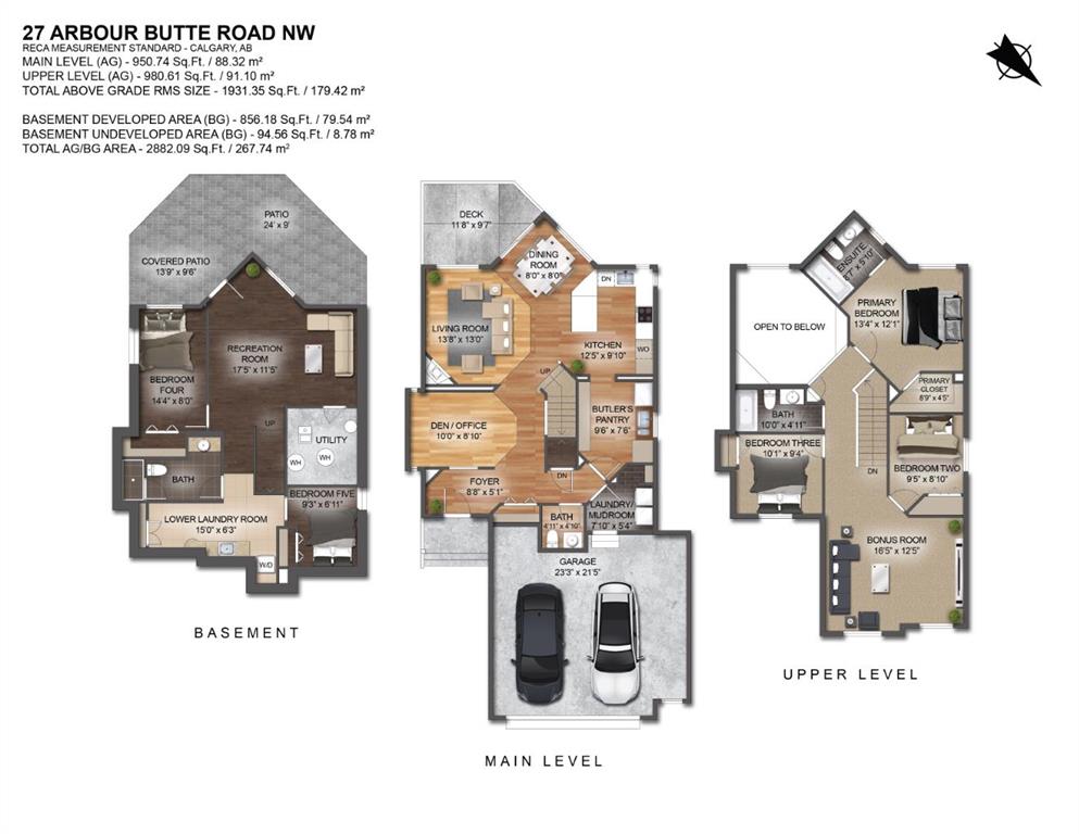 Open House 2-4PM, Saturday, March 28, 2026. Views from All Three Levels in Sought-After Arbour Lake! This gorgeous former show home offers a fully finished walkout basement, a sunny south-facing backyard, and uninterrupted green space views that extend for kilometers. With a bright open floor plan and soaring 18-ft ceilings in the family room, this home is filled with natural light and designed for comfortable living. A main floor den, which can also function as a formal dining room, adds flexibility to the layout. The fully renovated kitchen is a standout, featuring quartz countertops, a large island, butler’s pantry, stainless steel appliances, and a chimney-style hood fan. Hardwood flooring flows from the entry through to the kitchen, while the adjacent breakfast nook and back deck provide the perfect spaces to enjoy morning coffee or unwind in the evening. Upstairs, the spacious primary bedroom includes a walk-in closet and a 4-piece ensuite. A large bonus room, along with two additional generously sized bedrooms and another full bathroom, completes the upper level. The fully developed walkout basement adds excellent versatility with a bedroom, wet bar, family room, flex space, and a second washer and dryer—ideal for guests or extended family.