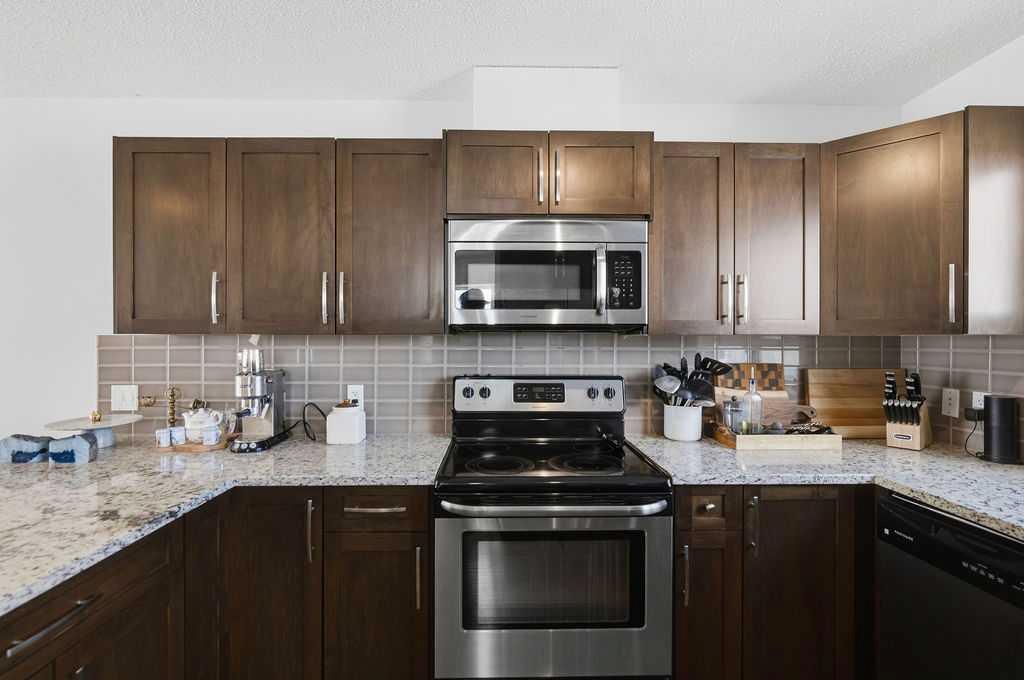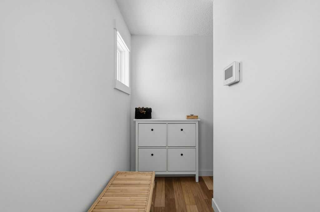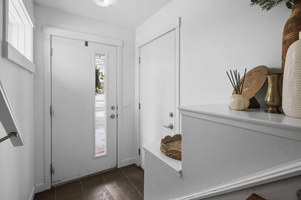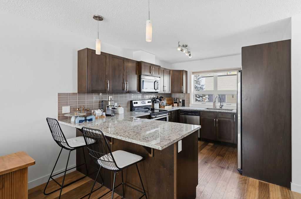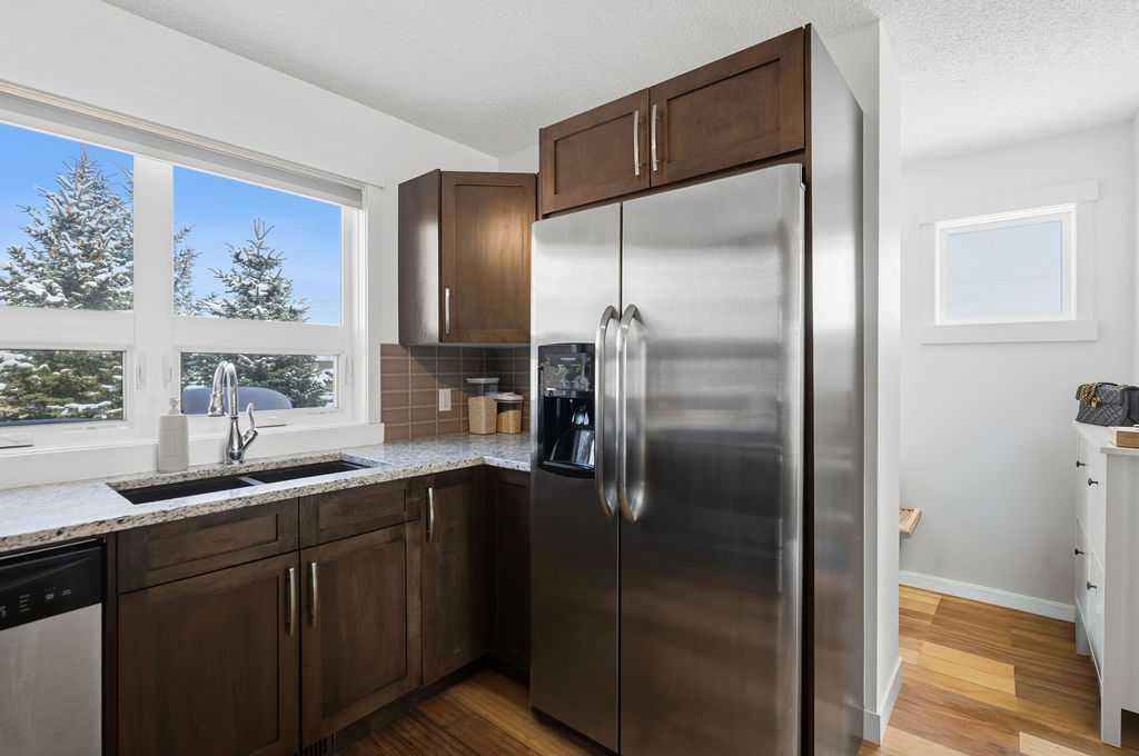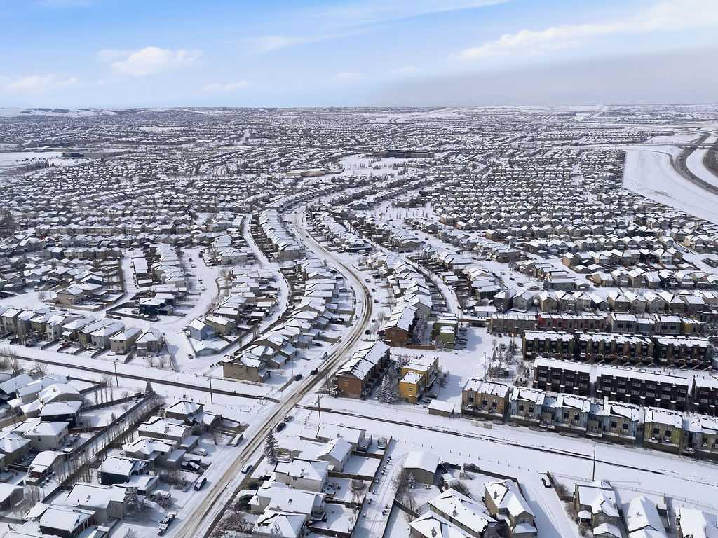 Welcome to this beautifully custom-designed end-unit townhouse in the highly sought-after community of Coventry Hills. Meticulously maintained and in immaculate condition, this home offers both style and functionality throughout. The main floor features a bright, open-concept layout highlighted by sleek engineered hardwood flooring and expansive modern windows that flood the space with natural light. The chef-inspired kitchen is equipped with high-end stainless steel appliances, granite countertops, rich maple cabinetry, and a spacious island with ample storage and convenient bar seating—perfect for entertaining. Step outside to your private deck, complete with a natural gas hook-up, glass railing, and serene views of open green space—ideal for summer evenings. Upstairs, you’ll find a spacious primary bedroom with a walk-in closet and a 4-piece ensuite, along with a generously sized second bedroom, an additional 4-piece bathroom, and a conveniently located front-loading washer and dryer. The oversized attached garage is fully finished and insulated, featuring a cleverly hidden storage room for added practicality. Ideally located close to shopping, restaurants, schools, and offering quick access to Deerfoot Trail and Stoney Trail. This is a must-see home you don’t want to miss!