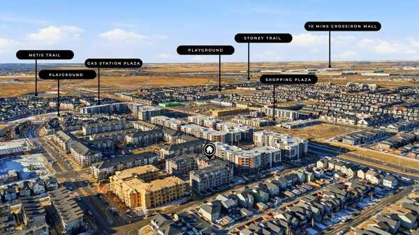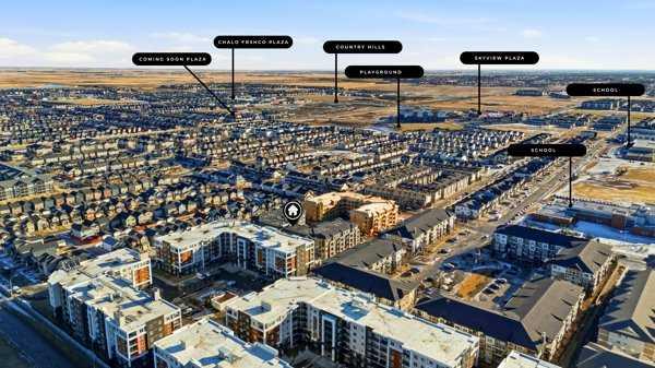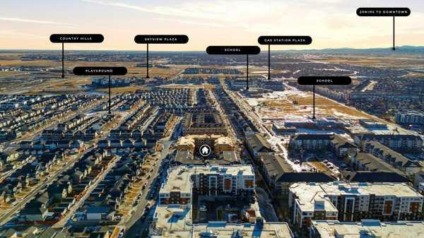 Welcome To This Brand-New, Move-In-Ready End Unit 1 Bedroom + Den, 1 Bathroom Condo Located In The Vibrant And Rapidly Growing Community Of Skyview Ranch In NE Calgary. Thoughtfully Designed For Modern Living, This Bright And Airy Home Features 9-Foot Ceilings And Expansive Windows That Fill The Open-Concept Layout With Natural Light. The Spacious Den, Complete With A Large Window, Offers Excellent Flexibility And Can Easily Be Converted Into A Second Bedroom With The Addition Of A Door. Wide-Plank Luxury Vinyl Flooring And Quartz Countertops Throughout Provide A Sleek, Contemporary Finish, While The Fully Upgraded Kitchen Showcases Stainless Steel Appliances, An Over-The-Range Microwave, Soft-Close Cabinetry, A Pantry, Quartz Countertops, And A Convenient Breakfast Bar—Perfect For Casual Dining, Working From Home, Or Entertaining. The Kitchen Flows Seamlessly Into The Living And Dining Areas, Creating A Comfortable And Inviting Space. This End Unit Offers Generously Sized Rooms And A Modern 4-Piece Bathroom Featuring Quartz Countertops And Quality Finishes, Along With In-Suite Laundry, Upgraded Designer Window Coverings, And A Large Private Balcony Complete With A BBQ Gas Line—Ideal For Outdoor Relaxation And Entertaining. The Property Includes Titled Underground Parking And A Titled Storage Locker, Providing Added Convenience And Value. Located In A Newly Constructed Building, Residents Benefit From Low-Maintenance Living With Close Proximity To Shopping, Schools, Public Transit, Major Amenities, Calgary International Airport, And Quick Access To Stoney Trail For Easy Commuting Throughout The City, Along With Secure Underground Bike Storage. Ideal For First-Time Buyers, Professionals, Or Investors, This Turnkey Condo Offers An Excellent Opportunity To Own In One Of Calgary’s Most Desirable And Growing Communities, Providing A Smart Alternative To Renting While Building Equity In A Modern And Well-Connected Location.
