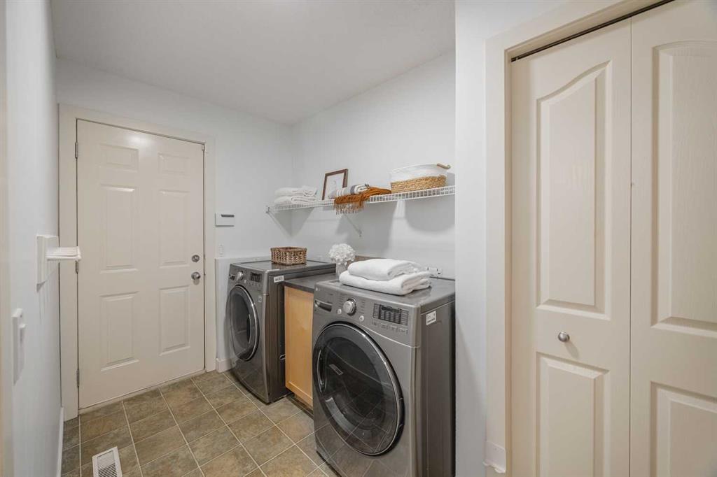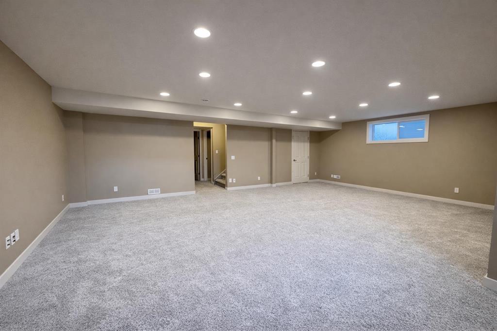 The lower level offers a generous and versatile rec room with plush carpeting, pot lighting and additional storage, along with a fifth bedroom and full bathroom with heated floors.
