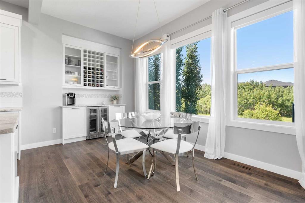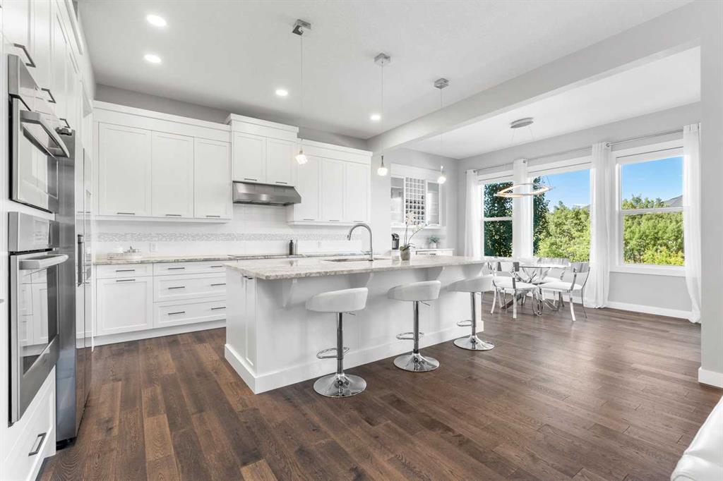 BACKING ON TO A NATURAL RESERVE | SUNNY WEST YARD | OVERSIZED LOT | WALKOUT BASEMENT | Open House Saturday March 28, 3-5pm. Set on one of the most coveted lots in West Springs, this exceptional family home backs onto the serene West Grove Tree Preserve. With an oversized 6,300 sq ft west-facing yard, you can step out your back gate to winding pathways, picnic spots, expansive green spaces, forests and space for the kid to run and play. Custom built with endless upgrades, the home offers nearly 4,000 sq ft of living space with 5 bedrooms, 3.5 bathrooms, a fully finished walkout basement and the most beautifully landscaped yard. Inside, refined finishes and thoughtful design shine—from the main floor office to the 10 ft ceilings, to the vaulted bonus room. The chef’s kitchen has all of the details curated with built-in appliances, extended cabinetry, a coffee bar with a beverage fridge and a walk-through pantry with an additional fridge. The dining area overlooks the forest views – every window you look out, you see greenery. Upstairs, the primary suite features a spa-inspired ensuite with separate vanities, a free-standing bathtub and an oversized glass shower. The walk-in closet is fit with built-ins and conveniently offers direct access to the laundry room. Two additional, spacious bedrooms with walk-in closets share a main bathroom. An inviting bonus room completes the upper level with vaulted ceilings. The walkout level offers heated floors and adds two more bedrooms, a full bathroom, additional washer/dryer, a cozy rec space with a fireplace and a full basement bar area fit with a kegrator with two built-in beer taps. Right out the lower patio doors is a hot tub with an outdoor shower and a gas heater. This is the perfect space to relax and enjoy with family and friends. The home is finished with an impeccably landscaped yard, featuring an upper deck, a lower concrete patio, charming storage shed, raised garden boxes, and a private gate opening to the picturesque greenspaces. With air conditioning, irrigation, solar panels, water softener, vacuflo, oversized and heated garage and more, every convenience is included. Walking distance to top-rated schools and minutes to shopping, dining, downtown, and the mountains, this home offers the perfect blend of nature, community, and upscale living. Truly a forever home.