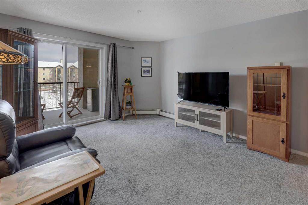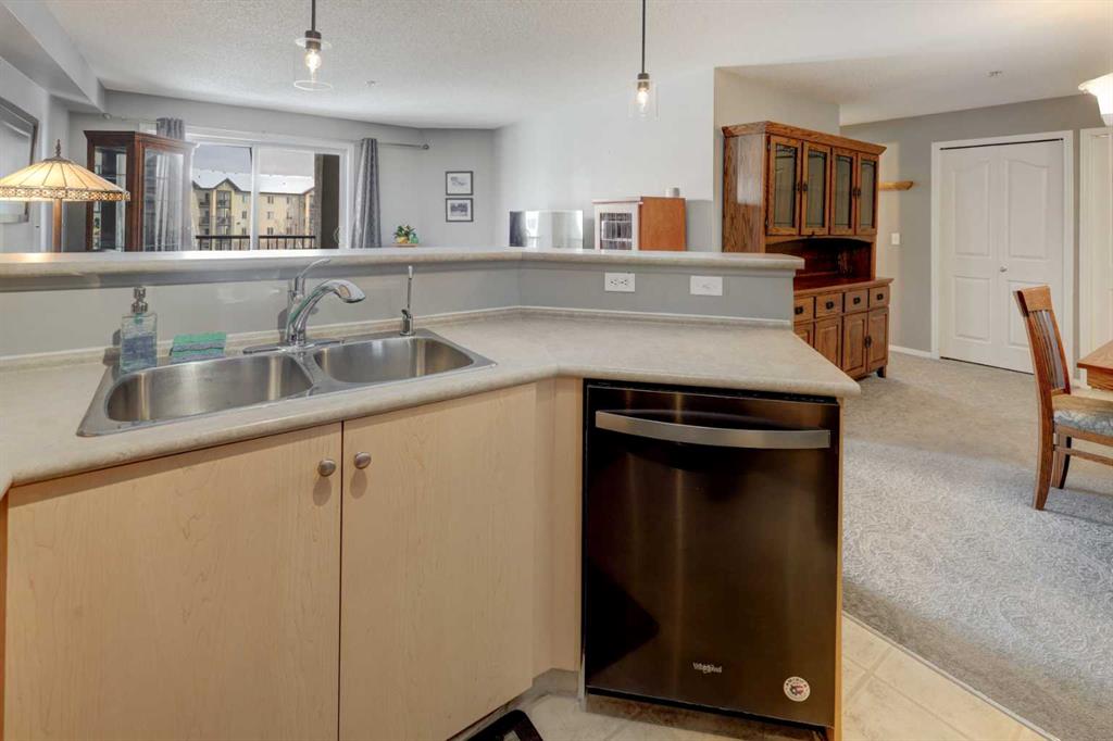 Bright, beautifully maintained 2 Bedroom/2 Bathroom is almost perfect, it just needs YOU!! This inviting condo in the heart of Airdrie has a TITLED & HEATED UNDERGROUND PARKING stall, assigned storage AND in-suite Laundry. Offering a functional open-concept layout, this home is filled with natural light and designed for easy, comfortable living. The Kitchen hosts SS appliances, loads of cabinet storage, linoleum floors, and an eat-up Breakfast Bar. Flowing seamlessly into the spacious Living and Dining areas with cozy carpet, that steps outside onto the fantastic-sized COVERED Balcony with POND VIEWS—perfect for enjoying your morning coffee or unwinding at the end of the day. The Primary Bedroom is huge, featuring a 4-pc Ensuite AND organized Walk-In Closet. There is a 2nd Bedroom with a bright window & closet, a 4-pc Bathroom, and you’ll also find the convenience of in-suite laundry with additional storage space, making day-to-day living effortless. This unit offers a unique advantage providing added privacy with one less shared wall—a rare and valuable feature. Complete with titled underground heated parking and an assigned storage unit, this home checks all the boxes. Even better, the condo fees include all the usuals PLUS electricity, heat, and water, offering true peace of mind and predictable monthly costs. Enjoy the convenience of living in a well-connected Airdrie community close to shopping, restaurants, parks and everyday amenities, with easy access for Calgary commuters. Whether you’re a first-time buyer, downsizer, or investor, this bright and low-maintenance home is an excellent opportunity in a well-managed complex - book your private viewing TODAY!
