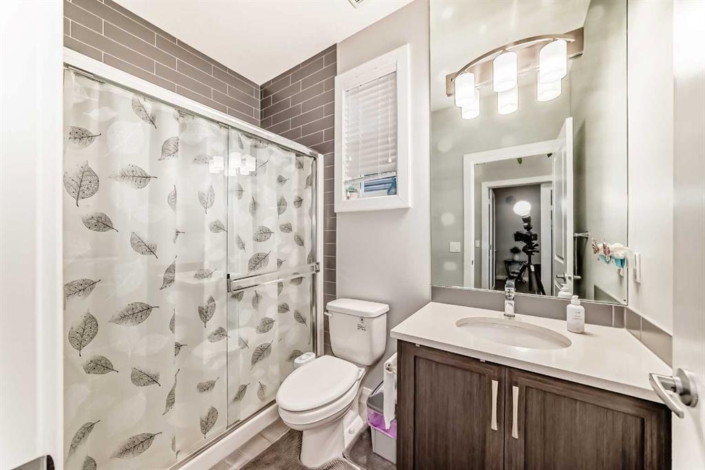 Welcome to this stunning 2-storey detached home located in the sought-after Redstone community of NE Calgary, just minutes from the YYC Airport. Built on a conventional lot, this property offers modern design, thoughtful layout, and convenience for growing families or investors alike. The main floor features a bedroom/den and full bath, perfect for guests or multi-generational living. Enjoy open-concept living with a bright dining area and a spacious living room highlighted by a gas fireplace tiled to the ceiling. The chef-inspired kitchen boasts maple wood cabinets, quartz countertops, and a walk-in pantry, offering both style and function. Upstairs, the primary bedroom includes a luxurious 5-piece ensuite and a huge walk-in closet. Two additional large bedrooms share a full bathroom, and the laundry room with side-by-side washer and dryer adds everyday convenience. The basement comes with a separate side entry and is developed as a two-bedroom (illegal) suite with 9-ft ceilings—ideal for extended family ( Currently rented for $1300 per month). This property is just 10 minutes to Airport , walking distance to shopping center and upcoming New Gurdwara ( Cornerstone). To book a showing call your favorite realtor!