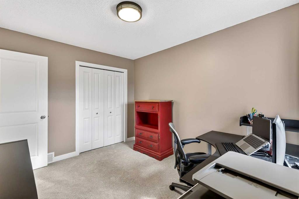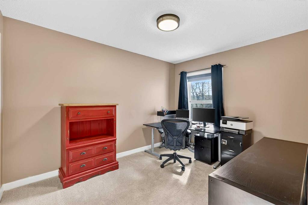 Upstairs, you’ll find four bedrooms, including a spacious primary suite complete with a full ensuite featuring a tile-and-glass shower and separate soaker tub. The fourth upper bedroom offers flexibility as a bedroom, playroom, or bonus room depending on your needs. An additional full bathroom and newly installed carpet throughout the upper level adds comfort and move-in-ready appeal.
