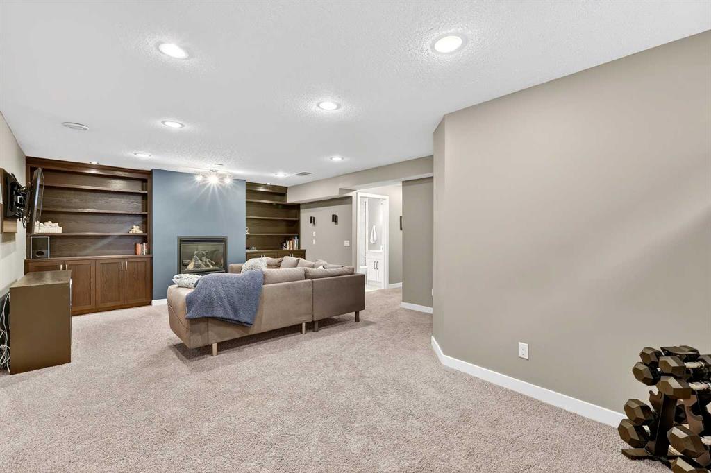 The fully finished lower level expands the home’s functionality with a fifth bedroom, full bathroom, generous family room with a second gas fireplace, and a dedicated tech or study space — ideal for guests, teenagers, or multi-generational living.