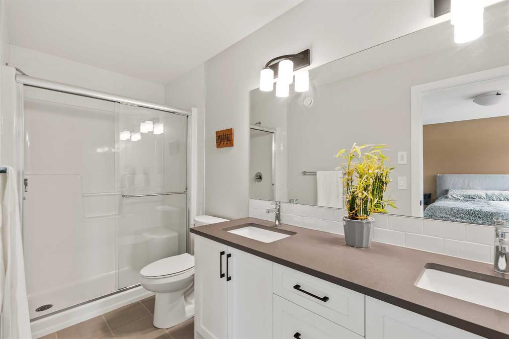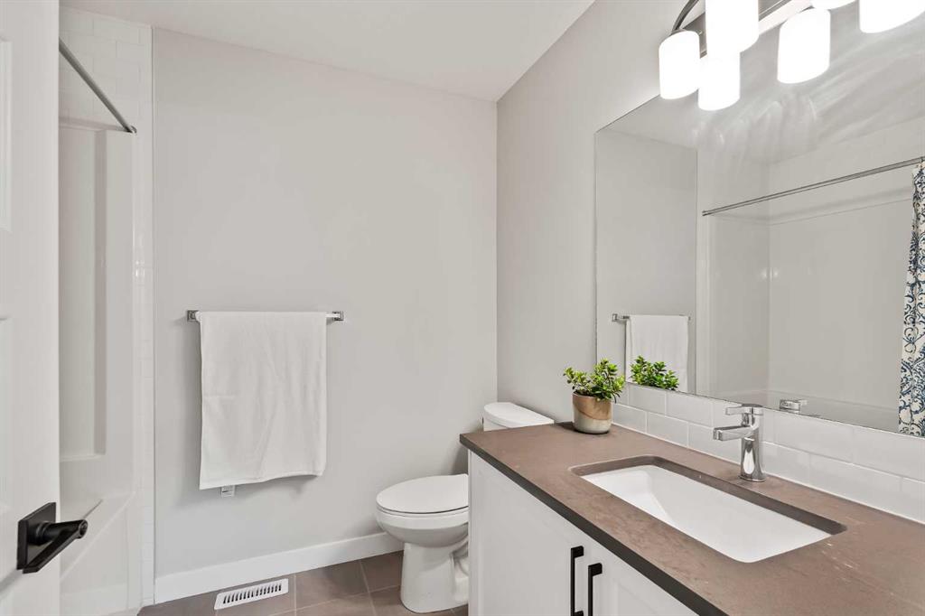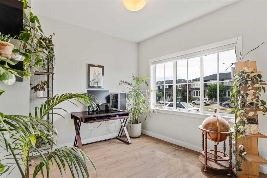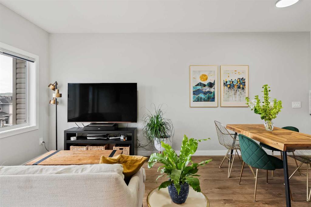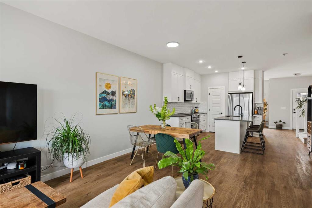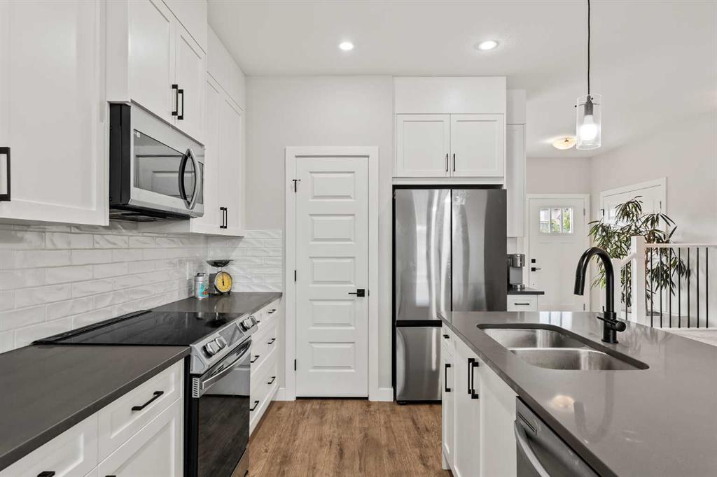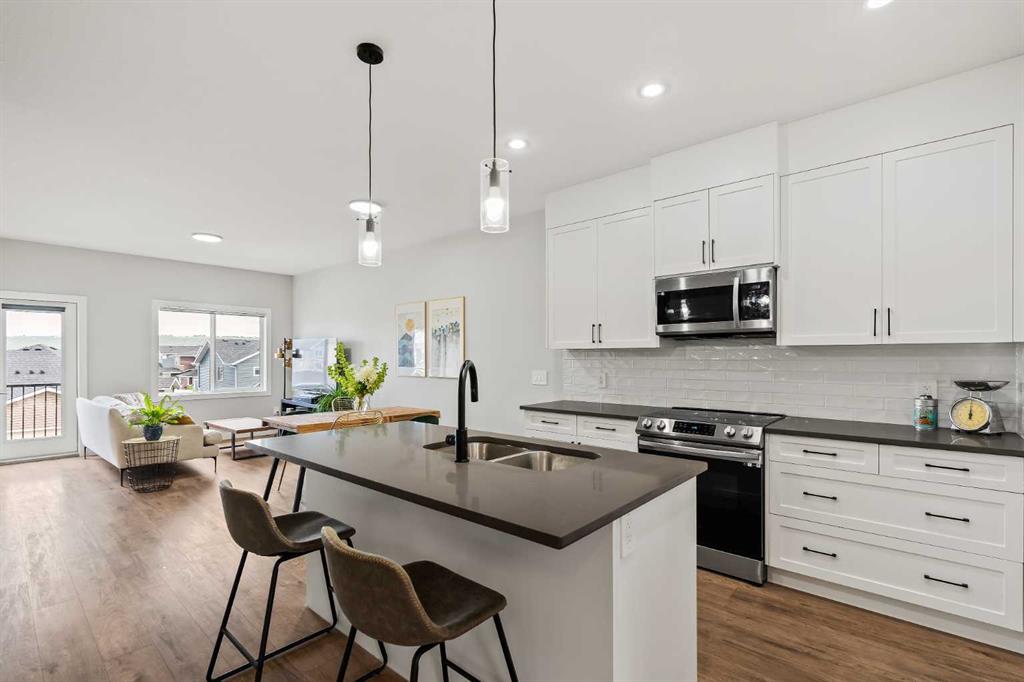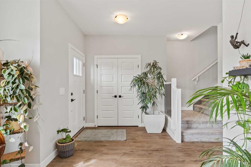 Built in 2022, this contemporary like-new home in River Heights combines stylish design with family-friendly functionality. A sunny south-facing front patio welcomes you with space to enjoy morning coffee or keep an eye on the kids while they play. Inside, 9’ ceilings create an airy atmosphere while durable finishes stand up to everyday life. A bright flex room at the front of the home provides a comfortable space for work, study or a playroom. Flowing through the main level, the open plan layout balances togetherness with defined spaces. The inviting living room offers a relaxed setting that extends easily to the rear deck, ideal for summer barbecues or unwinding outdoors. Anchoring the design, the dining area keeps family meals and gatherings connected, while the modern kitchen blends function and style with quartz countertops, stainless steel appliances, timeless subway backsplash and a central island with seating for casual bites. A pantry ensures everything is within easy reach and a powder room enhances convenience. Upstairs, the hallway landing is generous enough for a cozy reading nook or homework station. The spacious primary retreat features a walk-in closet and a sleek ensuite with dual sinks and an oversized shower for a touch of everyday luxury. Two additional bedrooms share a well-appointed four-piece bathroom and the upper laundry room saves time and steps on busy family mornings. The walkout basement is ready for future development, already offering direct access to the fenced backyard where kids and pets can play safely on the grassy lawn. A rear deck with stairs down provides a seamless indoor-outdoor connection and a parking pad accommodates two vehicles. Living in River Heights means being minutes from schools, playgrounds and shopping, while Cochrane’s trail network and outdoor spaces are always close at hand. This home delivers the style you want with the practicality your family needs.