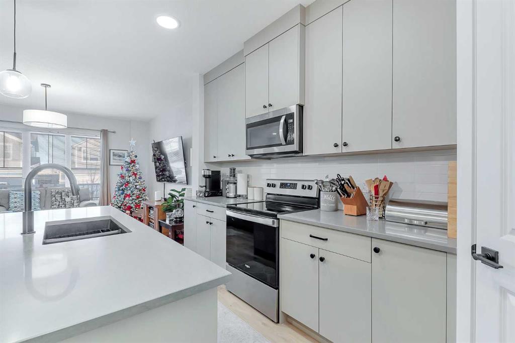 Welcome to the community of Fireside, where luxury and comfort meet in this stunning semi-detached home. Step inside this beautiful property boasting over 1700 sq ft of professionally developed living space, featuring 4 bedrooms, 3.5 bathrooms, and an oversized double detached garage. As you enter, the main floor welcomes you with beautiful vinyl flooring and an abundance of natural light streaming in through the large windows, illuminating the spacious living room, kitchen, and dining area. The contemporary kitchen is equipped with stainless steel appliances, quartz countertops, modern cabinetry, a kitchen island, and a separate pantry. Ascend upstairs to find three well-proportioned bedrooms, including the primary bedroom, which is complete with a 4-piece ensuite and a large walk-in closet. Completing the upper level is a 4-piece bath and laundry unit, providing convenience for all occupants. The basement is fully finished with an additional bedroom, recreational/family room, and a 4-pc bath. Outside, the private backyard is perfect for entertaining with a spacious deck ideal for barbecuing and soaking up the summer sun. Located in an exceptional location, this property offers easy access to schools, parks, playgrounds, restaurants, and shopping, providing the perfect balance between work and play. This exceptional family home is waiting for you! Don't miss out on the chance to make this beautiful property your own and book your private viewing today!