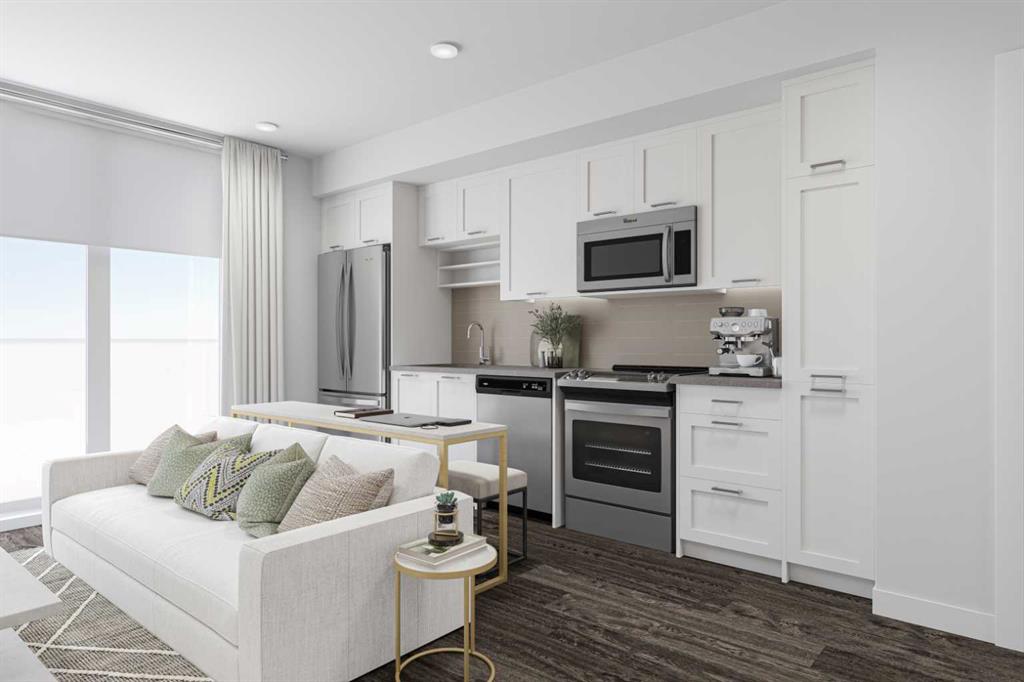 Built by Homes by Avi, this beautifully designed studio suite with the Coco floorplan offers modern living in the heart of Calgary’s vibrant Culture and Entertainment District. Steps from the Calgary Stampede, BMO Centre, Scotiabank Saddledome, and the restaurants and nightlife of 17th Avenue, this location delivers exceptional walkability and urban convenience. Nestled within the sought after community of Mission, you’re also moments from boutique shops, acclaimed dining such as Mercato and Añejo, and the world class MNP Community & Sport Centre. Inside, the condo features premium finishes and thoughtful design throughout. A kitchen island/eating bar with white quartz countertops is complemented by sleek white cabinetry, chrome faucets and hardware, and full size stainless steel appliances. Floor to ceiling windows and durable luxury vinyl plank flooring create a bright, contemporary atmosphere. The bedroom area, a 4 piece bath, large closet/storage space & discreet in suite laundry room complete this studio suite. Included roller shade window coverings add everyday convenience. Concrete construction provides lasting durability, while central air conditioning ensures year round comfort. Additional highlights include an assigned storage locker. From this location, you’ll love being able to walk to everything — from Mission’s cafés and shops to the energy of 17th Avenue. Enjoy the Bow River Pathway just minutes away or spend the day exploring the CORE Shopping Centre with more than 120 retailers, including Holt Renfrew. Whether training at the MNP Community & Sport Centre or meeting friends at local favorites like Ship & Anchor or Model Milk, this is urban living at its finest.