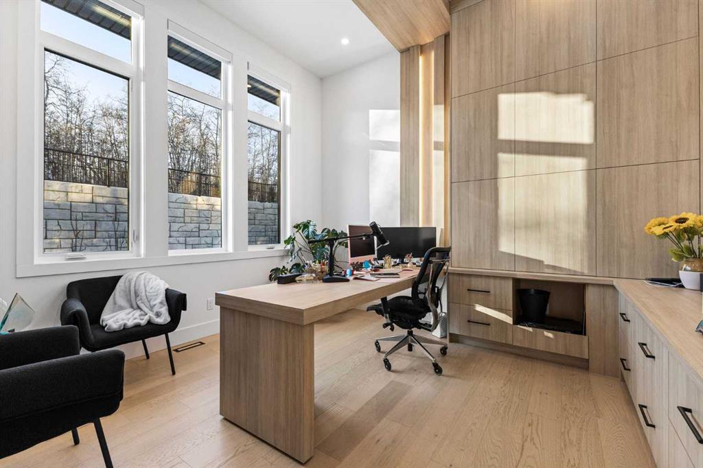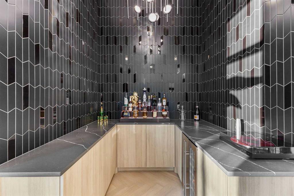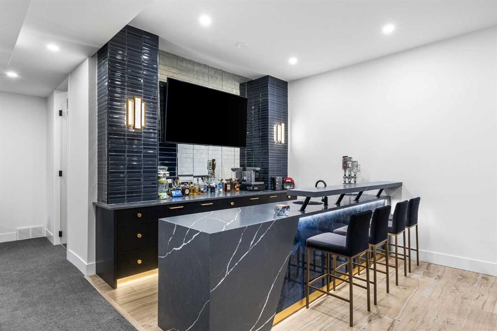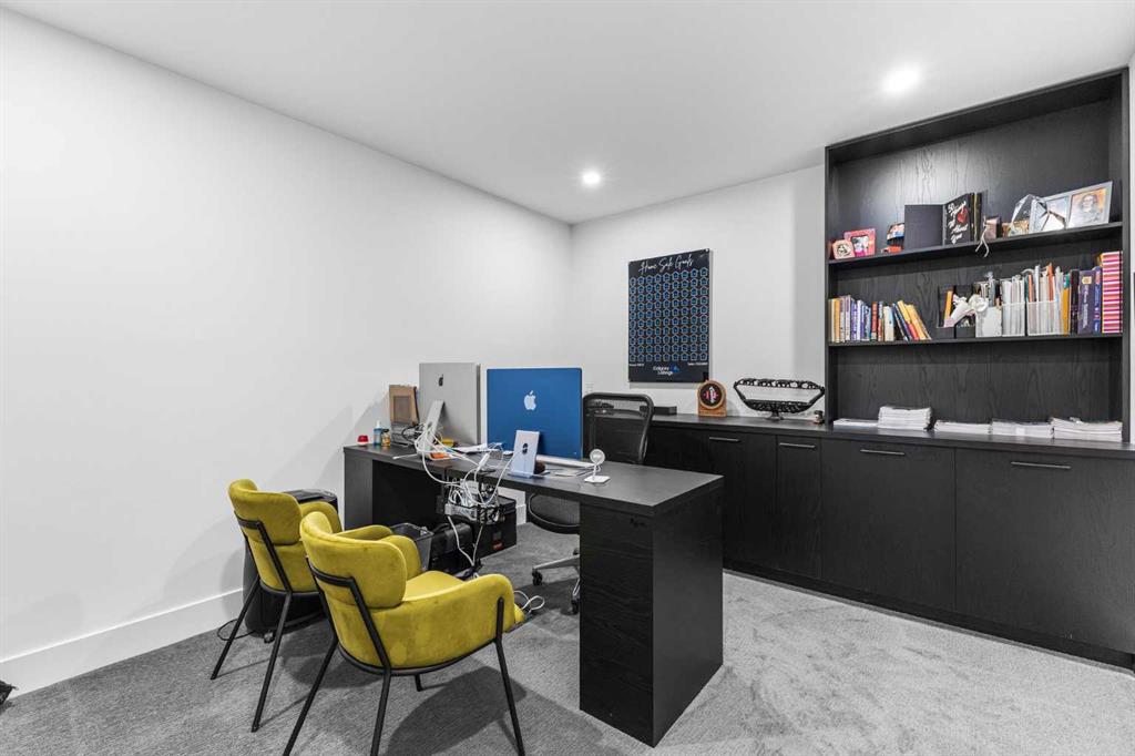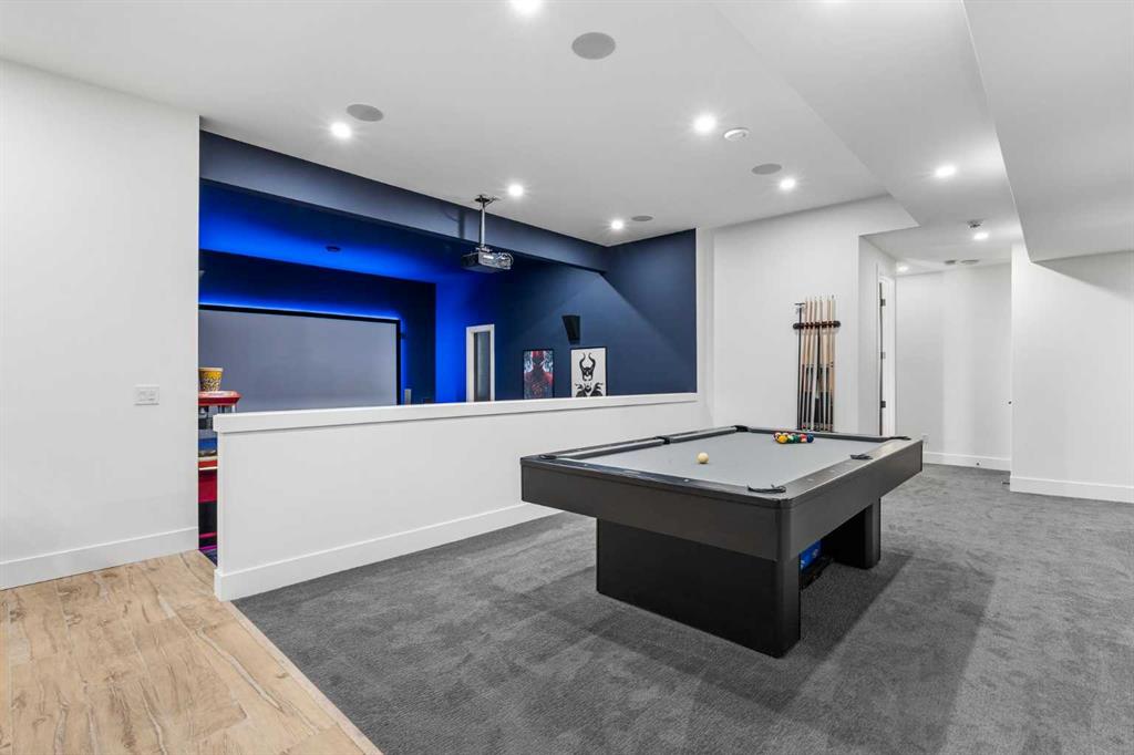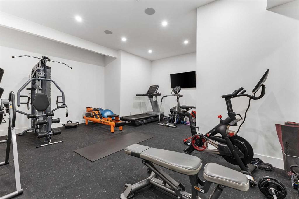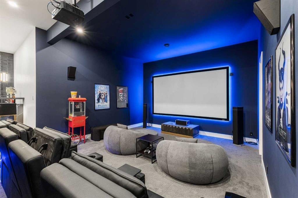 Upstairs, the 9-foot ceilings keep things feeling spacious without the grandeur of the main floor just the right scale for a private retreat. The primary suite is the kind of space you don't want to leave. His closet is massive and hers is something else entirely, the kind of boutique-style dressing room that makes getting ready feel like an occasion. A spa-calibre 5-piece ensuite w Steam Shower completes the retreat. Two more bedrooms and a 4-piece bath complete the upper floor, along with a dedicated laundry room right where you need it. The lower level is a genuine surprise and at 10-foot ceilings, it never feels like a basement. A dedicated gym, a wet bar, a private office, and a fifth bedroom it functions as a home within a home. The first rec room is a true home theatre, originally roughed in for a golf simulator with the infrastructure still in place. The second is a perfect billiards room that connects to the bar exactly as it should. This level handles movie nights, teenagers, and out-of-town guests without anyone feeling on top of each other.