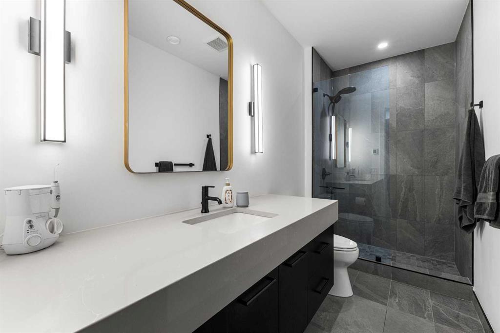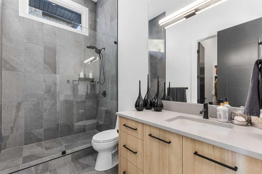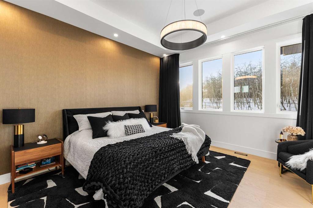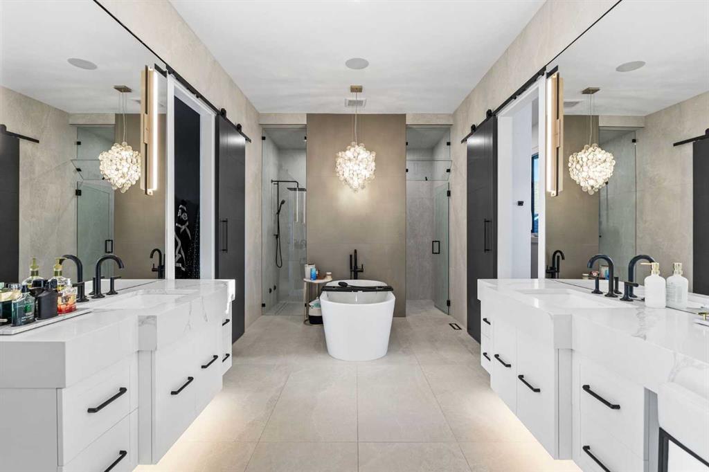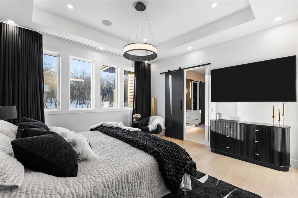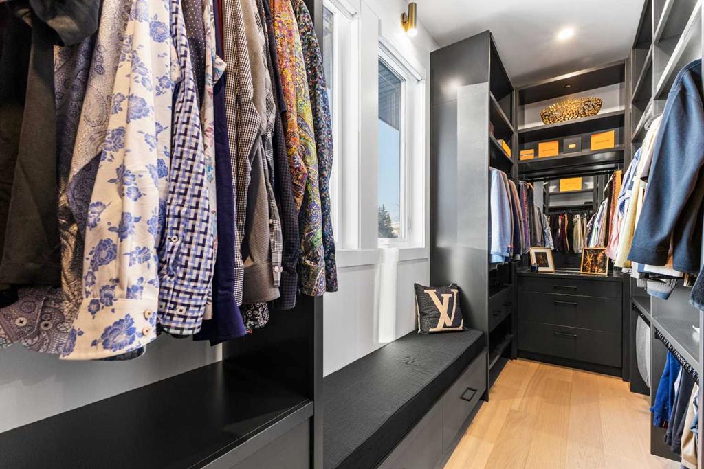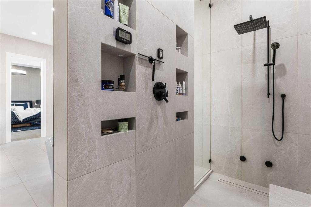 Upstairs, the 9-foot ceilings keep things feeling spacious without the grandeur of the main floor just the right scale for a private retreat. The primary suite is the kind of space you don't want to leave. His closet is massive and hers is something else entirely, the kind of boutique-style dressing room that makes getting ready feel like an occasion. A spa-calibre 5-piece ensuite w Steam Shower completes the retreat. Two more bedrooms and a 4-piece bath complete the upper floor, along with a dedicated laundry room right where you need it. The lower level is a genuine surprise and at 10-foot ceilings, it never feels like a basement. A dedicated gym, a wet bar, a private office, and a fifth bedroom it functions as a home within a home. The first rec room is a true home theatre, originally roughed in for a golf simulator with the infrastructure still in place. The second is a perfect billiards room that connects to the bar exactly as it should. This level handles movie nights, teenagers, and out-of-town guests without anyone feeling on top of each other.