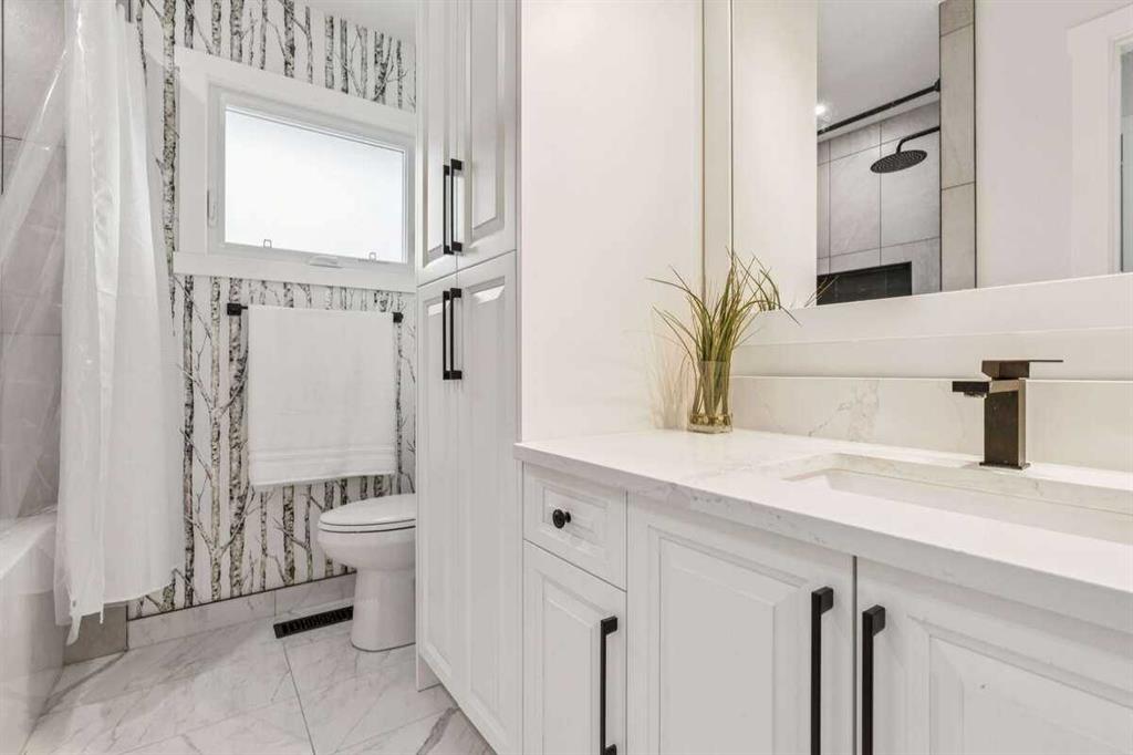 Welcome to this Custom Fully Remodeled Luxury Bungalow on a massive lot in the heart of Braeside. This stunning home boasts impeccable curb appeal with every detail finished to the highest quality. The exterior features new Hardie board siding, new Concrete landscaping with a grand entrance front deck area. As you step inside you are greeted with an abundance of natural light from the new oversized windows. The spacious and bright open concept floor plan features Premium 7" wide Luxury Vinyl Plank flooring that flows seamlessly throughout the main floor complimented with a modern wood burning Glass Fireplace. The new chef’s inspired gourmet kitchen is a true centerpiece featuring New S/S Appliances, Quartz Countertops with an Elegant Hexagon Marble backsplash and a massive Island with double functional storage on either side. Custom Solid Wood Maple Cabinetry compliments the kitchens, bathrooms, and entry way throughout the entire home. Adjacent is a generous dining area perfect for family and friend gatherings. The spacious master bedroom oasis retreat features a new oversized window. A custom 4 Piece ensuite with double sinks, an oversized Luxurious shower and walk-in-closet. Also, all bedrooms are furnished with custom closet solutions which significantly increase storage and functionality. Additionally, the main floor boasts 2 more spacious bedrooms, an elegant 4 piece main bathroom with floor to ceiling cabinetry for added storage with an upstairs laundry for convenience. The lower level has a separate entrance with an fully finished illegal basement suite which includes: a full kitchen with S/S appliances, 2 generous sized bedrooms, oversized new windows and a gorgeous 3-piece bathroom complimented with a secondary laundry facility. Additionally, there is a new 2 stage high-efficiency furnace and 60G high-efficiency hot water tank. There is side yard access for vehicle entry into the massive backyard featuring a patio area with a custom fire pit. Don’t miss out on this exceptional beautiful property that combines luxury and functionality in a prime location.