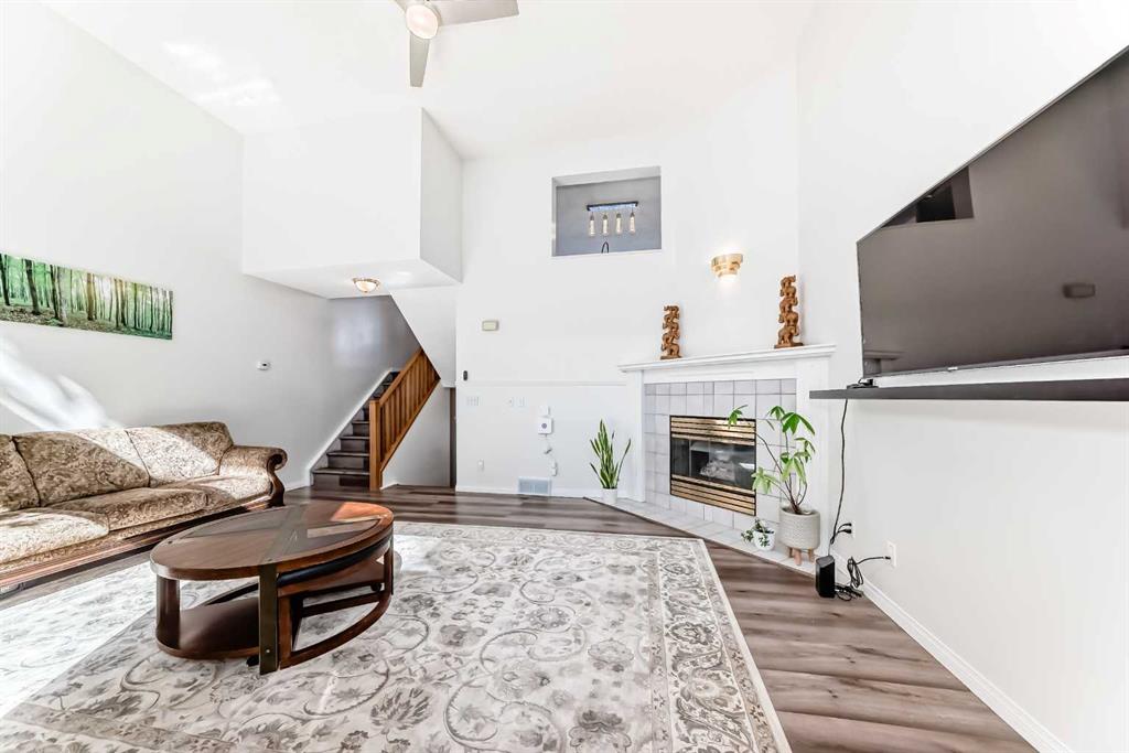 Inside, the open-concept design boasts a spacious great room with soaring two-storey ceilings and a cozy gas fireplace, a large dining area, and a kitchen overlooking the living space. Upstairs, you’ll find a generous primary suite with a walk-in closet and a full ensuite, plus two additional bedrooms and another full bath.