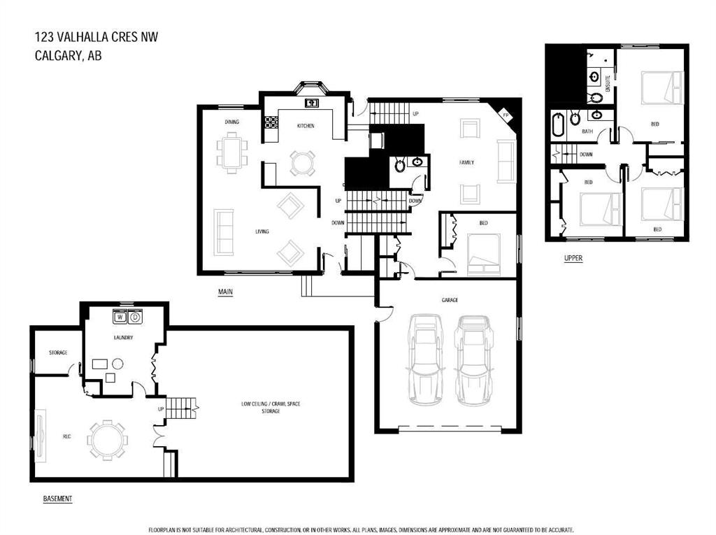 Your new home is a one owner, custom built, totally upgraded, family home ideally situated on a quiet crescent just steps away from a green belt (with a walking and biking path) in the highly sought-after community of Varsity. From the moment you arrive, the exceptional curb appeal will capture your attention, featuring the maintenance free brick and stucco exterior, oversized newer windows, doors and roof shingles, exposed aggregate driveway, walkway and more. From the moment you arrive, you'll be greeted by the bright and spacious living room and dining room that are enhanced by the elegant hand scraped hardwood flooring. The chef in you will love the gourmet kitchen that boasts an abundance of cabinetry and counter space, pantry with pull out drawers, stainless steel appliances, granite counter tops, an eating area and easy access to the south facing concrete patio and a beautifully landscaped yard - perfect for gardeners and outdoor enthusiasts alike. The upper level boasts 3 generously sized bedrooms, including the primary bedroom that offers a full ensuite with an oversize shower and a second full bathroom with a soaker tub. On the lower level you can unwind in the roomy yet cozy family room with a gas, corner, brick facing fireplace. This level also includes a fourth bedroom/office and a powder room that can easily be turned into a full bath. The basement is ideal for a rec room/games area, a cold room and tons of storage in the storage room and crawl space. This well-cared home has many other amazing features such as high end flooring throughout, custom blinds, newer interior and exterior doors, window shutters and much more. Don't miss the opportunity to be the next proud owner of this cherished home that is close to many great schools, tons of shopping, transit and the Dalhousie LRT, all other amenities, and quick access to downtown, the mountains and major thoroughfares. Please note that some of the photos are virtually staged.