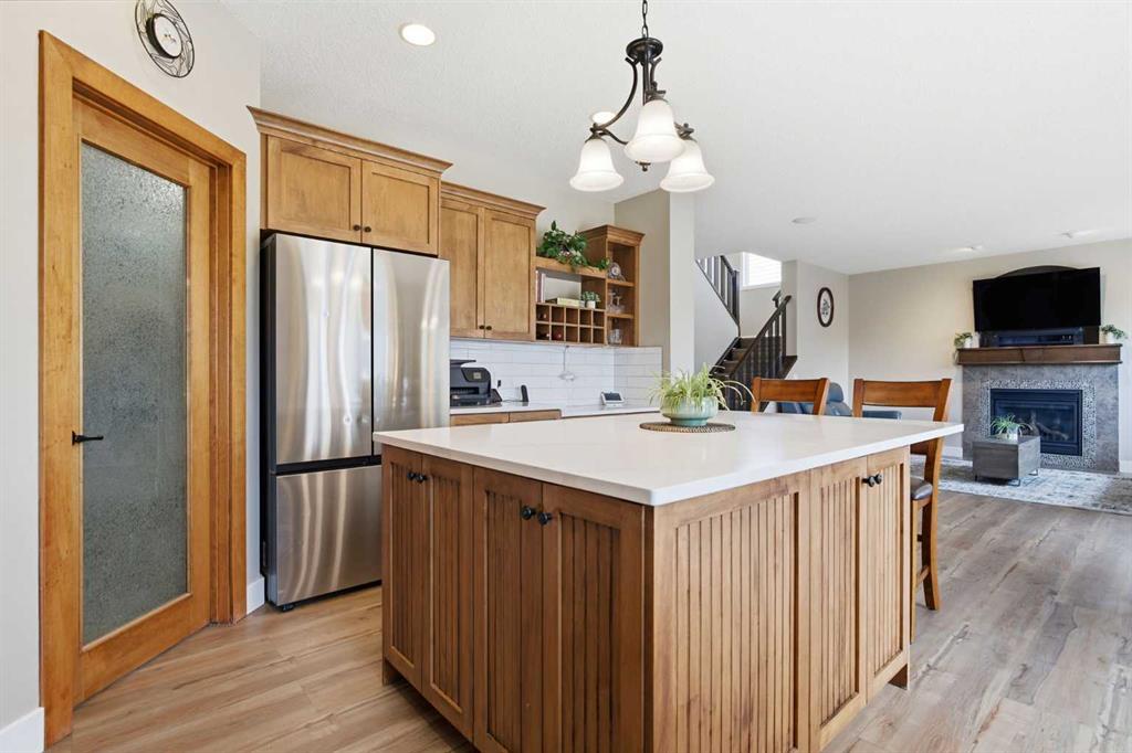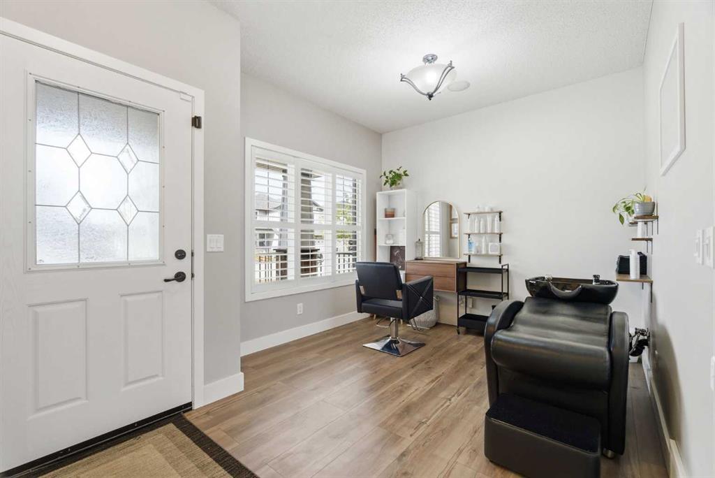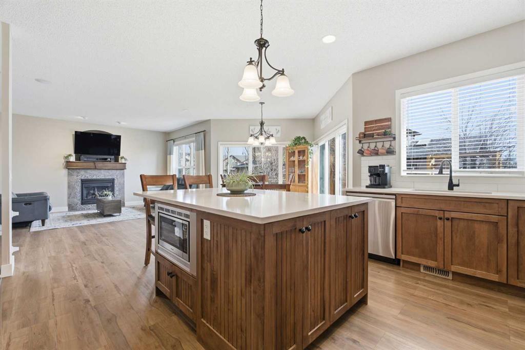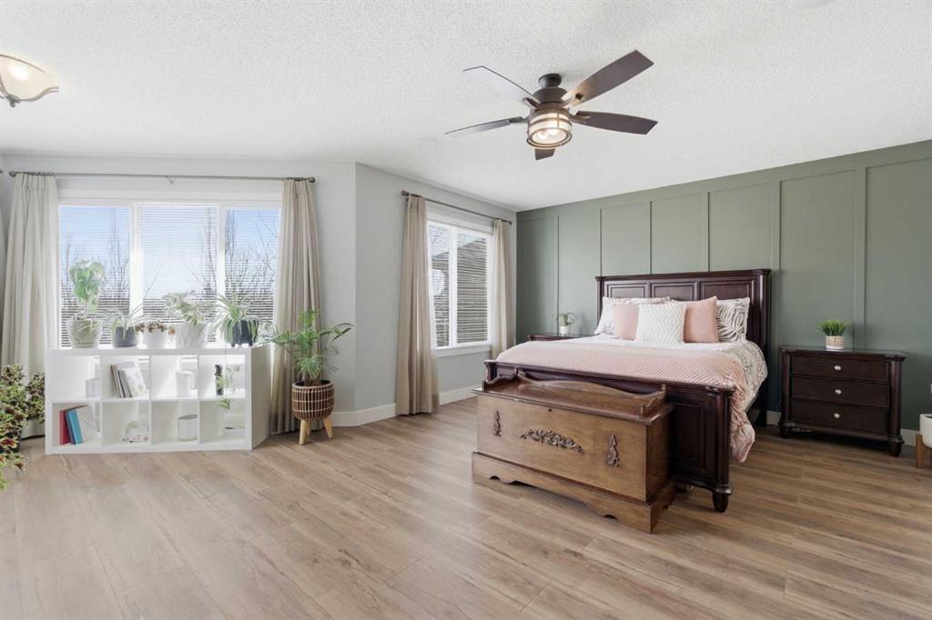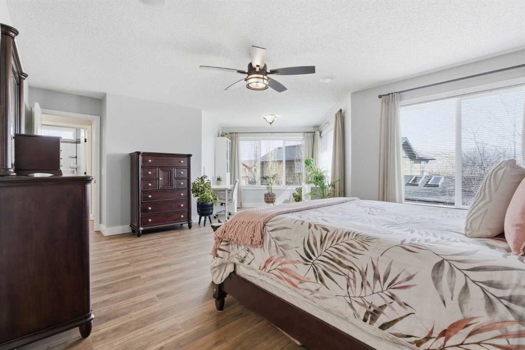 Welcome to a home that seamlessly combines executive luxury with a highly functional layout designed for modern family living in the prestigious Crystal Shores lake and golf community. This residence feels bright, modern, and completely move-in ready with fresh paint throughout, featuring airy 9-foot ceilings and a massive chef’s kitchen with a huge island that overlooks the great room. The "command center" of the main floor includes a massive walk-through pantry leading into an oversized mudroom designed to manage an active household's gear with ease. The front flex room, currently used as a hair salon, offers the perfect quiet space for a home office, music room, or formal dining. The dining nook provides a direct indoor-outdoor flow to a finished deck and a fully landscaped yard equipped with a pre-installed irrigation system. A rare standout feature of this property is the upper-level layout hosting four spacious bedrooms all on a single floor, including an enormous master retreat with a private sanctuary area and a spa-like ensuite featuring dual sinks, a 5-foot shower, and a 6-foot soaker tub. Laundry on this level makes the daily routine effortless for large families. The developed lower level is specifically tailored for multigenerational living or guests, boasting a fifth bedroom, a 3-piece bathroom, custom built-ins, and a partial kitchen for a self-contained feel. Car enthusiasts and hobbyists will appreciate the oversized 26x24 garage—measuring 25'4" x 23'11" per the floor plan—providing ample depth and width for large trucks, toys, and a workbench, added bonus, in-floor heat is available for completion. Stay cool all summer with central air conditioning, all while benefiting from exclusive access to Crystal Shores Lake for beach days, fishing, and skating, along with proximity to the Crystal Ridge Golf Club. Total Living Area: 3021 sq.ft.