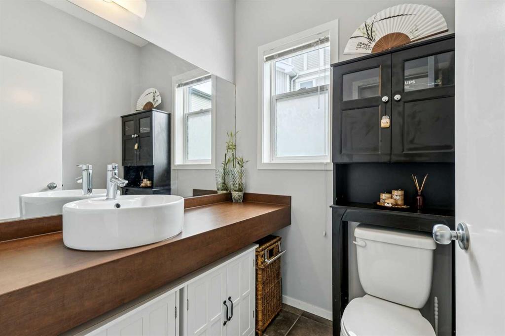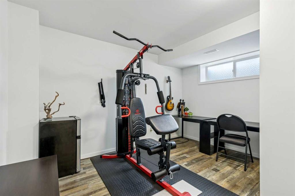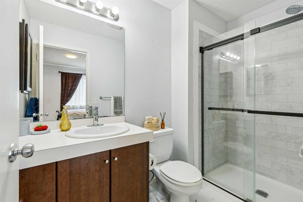Upstairs, you’ll find two well-sized bedrooms plus a versatile den, ideal for a home office, additional living space or to add a bedroom. The large primary bedroom includes a walk-in closet and a renovated ensuite, featuring a new shower and updated flooring (2024). The second bedroom is equally functional with a Murphy bed and desk setup (negotiable). A washer and dryer (2019) are also conveniently located on this level. The fully finished basement, completed in 2019, adds additional living space with an open rec area and nook, along with a water softener (2019) and a recently updated furnace (2024).