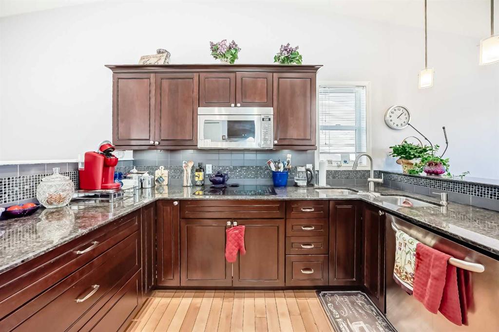 This charming bungalow villa is located in the desirable 55+ age restricted community of Harvest Lake Greens Villas, combines convenience and style. This Walk out bungalow with 1793 square feet of developed living space is ideally located on a quiet cul-de-sac. This is not a condo! There is a management company and HOA that takes care of the snow and the landscaping. Main floor features spacious open living room, kitchen with breakfast bar, dining area and an additional bedroom, 4-piece bathroom and main floor laundry. The primary bedroom is spacious and designed with a focus on comfort and practicality. It includes a private three-piece en-suite bathroom, complete with walk-in shower, adding convenience to everyday routines. Additionally, a roomy walk-in closet offers ample storage space, making it easy to stay organized. The developed area in the walk out basement is currently used as a large family room with two spacious bedrooms and a 4-piece bathroom. This home has a double attached finished garage and a front driveway for additional parking! Brand new roof shingles! (2025) This lovely property won't last long! Call your favorite Realtor to set up a private showing!