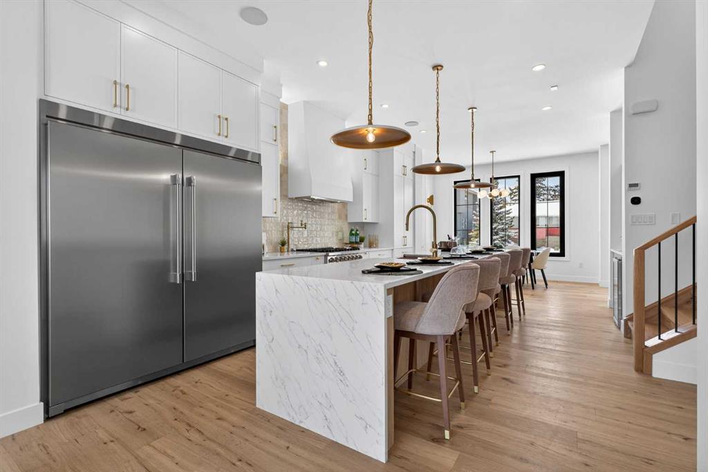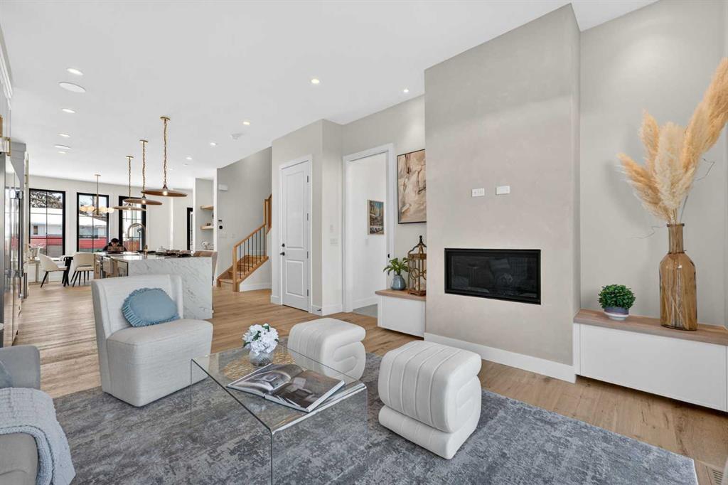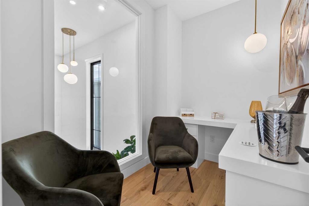Nestled on one of Spruce Cliff's most coveted streets, 416 36 Street SW stands as a testament to modern luxury and thoughtful design. Imagine a family envisioning their future, or a couple with growing needs, pulling up to their brand-new dream home. This isn't just a house; it's the backdrop for their next chapter. Stepping inside, the 10-foot ceilings on the main floor immediately captivate. Sunlight streams through unique European-style windows, which elegantly tilt or swing open, inviting the gentle breeze. The chef's kitchen is a true culinary sanctuary, featuring a premium stainless steel appliance package with a 6-burner gas range and a 60-inch fridge/freezer, a convenient pot filler, and ample prep space on the stunning 13-foot island with its farmhouse sink and waterfall quartz edge. Sleek painted thin-profile shaker cabinets and a dedicated coffee station add to the thoughtful design. Warm hardwood floors flow seamlessly, guiding them through the open-concept space. The dining area, with its stylish feature wall, promises intimate dinners. In the living room, the fully Venetian plastered gas fireplace beckons cozy evenings, while patio doors open onto a spacious composite deck, engineered for no maintenance and long-lasting durability, complete with a gas connection for BBQs. A clever secret, a hidden door, conceals the chic two-piece bathroom. As they ascend the hardwood staircase, the second floor unfolds into a haven of comfort. The large primary bedroom, a serene retreat, boasts a captivating feature wall, vaulted ceilings and a spa-like five-piece ensuite. The two additional bedrooms offer ample space for children or guests, serviced by a beautifully appointed four-piece bathroom. A dedicated office, complete with a built-in desk, provides a quiet space to focus. Hardwood floors continue throughout this level. But the story doesn't end there. Downstairs, a fully independent, two-bedroom legal suite, with durable LVP flooring, presents a world of possibilities. Perhaps for visiting family, or as a smart investment, offering the flexibility of long or short-term rentals. Beyond the immediate charm, this home offers hidden strengths and smart features. The party wall, built to code with upgraded insulation, an extra layer of 5/8" drywall, and resilient channels (Sound Bar), ensures unparalleled soundproofing. The thoughtful pre-wiring for A/C, built-in speakers, central vacuum, and Cat6 in the office and bedrooms speaks to a home designed for convenience and the future. 416 36 Street SW isn't just a new build; it's an invitation to a lifestyle. It's the beginning of countless memories and the quiet comfort of knowing you've found your forever home on a street where quality and community converge. (Pictures/Layouts https://listedmedia.aryeo.com/sites/rxozypwb/unbranded)