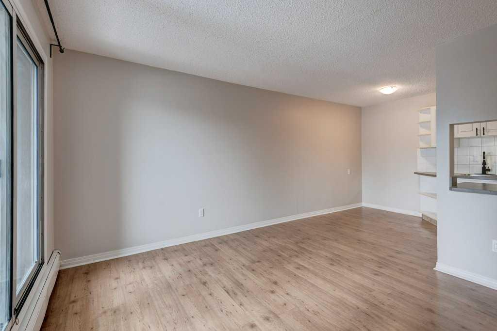 Inside, the open-concept layout is designed for both comfort and functionality. Laminate flooring flows through the spacious living and dining areas, complemented by tile in the kitchen and bathroom. A light, neutral décor enhances the natural brightness of the space, creating a modern and inviting atmosphere ideal for working professionals or urban dwellers seeking a refined lifestyle. The unit has been thoughtfully updated to include in-suite laundry with , adding everyday convenience.