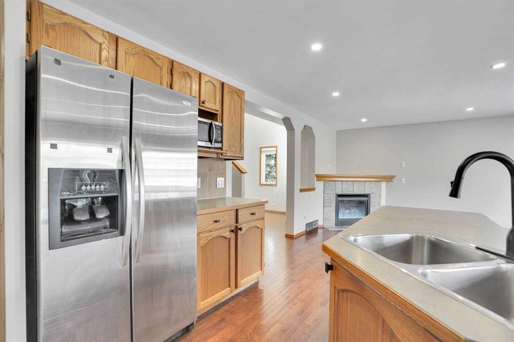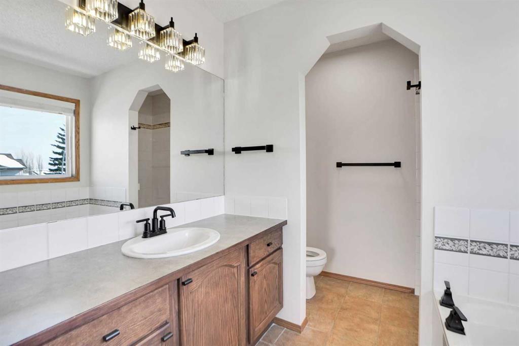 Welcome to 221 Tuscany Meadows, a wonderful family home in the heart of Tuscany!!!! Walking paths, parks, public transportation, schools and Tuscany Club just steps from your front door. The main entrance greets you with a desirable open concept, hardwood floors throughout, cozy corner gas fireplace, and an abundance of windows soaking in all the natural light. A spacious kitchen with walk in pantry, main floor laundry, half bathroom, and beautiful dining area top off the main floor. The Upper level has a generous bonus room with oversized windows to enjoy the mountain view. The primary bedroom includes a walk in closet, four piece en suite and stand alone shower. There is two secondary bedrooms along with a four piece bathroom for added convenience. The recently developed Lower level is absolutely stunning. The elegant design and layout create a perfect basement retreat for you and your family. With a large rec/media room, oversized bedroom, and a 3 piece bathroom that you will not want to miss. But there is more, enjoy those beautiful summer nights in your professionally landscaped back yard. The large deck and brick work make for a gorgeous retreat for you to enjoy!