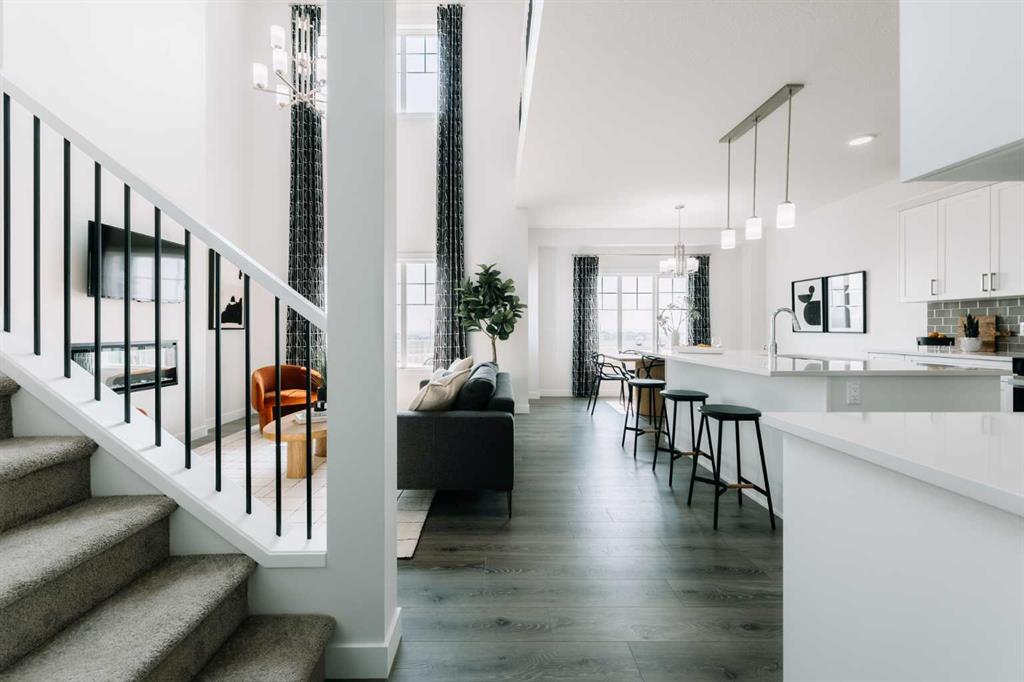 Located in The Ranch, one of Strathmore’s most sought-after new communities, residents will love the small-town charm, scenic surroundings, and quick access to schools, shopping, and parks. The Fulton by Akash Homes offers over 2,200 sq. ft. of stylish, functional living with 9-ft ceilings, quartz countertops, and modern fixtures throughout. This contemporary two-storey features an open-concept main floor with a den for added versatility and an open-to-below concept that fills the home with light and architectural flair. Enjoy a convenient upstairs laundry and three spacious bedrooms, including a primary suite with a 5-piece ensuite and walk-in closet. The double attached garage adds convenience, while the SEPARATE SIDE ENTRANCE offers flexibility for future development. Plus, receive a $5,000 BRICK CREDIT to personalize your space. **PLEASE NOTE** PICTURES ARE OF SHOW HOME; ACTUAL HOME, PLANS, FIXTURES, AND FINISHES MAY VARY AND ARE SUBJECT TO AVAILABILITY/CHANGES. HOME IS UNDER CONSTRUCTION.