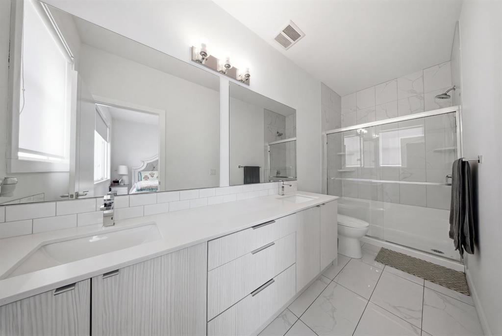 The upper level features two generously sized bedrooms, including a primary retreat with a walk-in closet and private ensuite. An additional full bathroom serves the second bedroom, and a versatile loft area provides flexible space for a home office, lounge, or playroom.