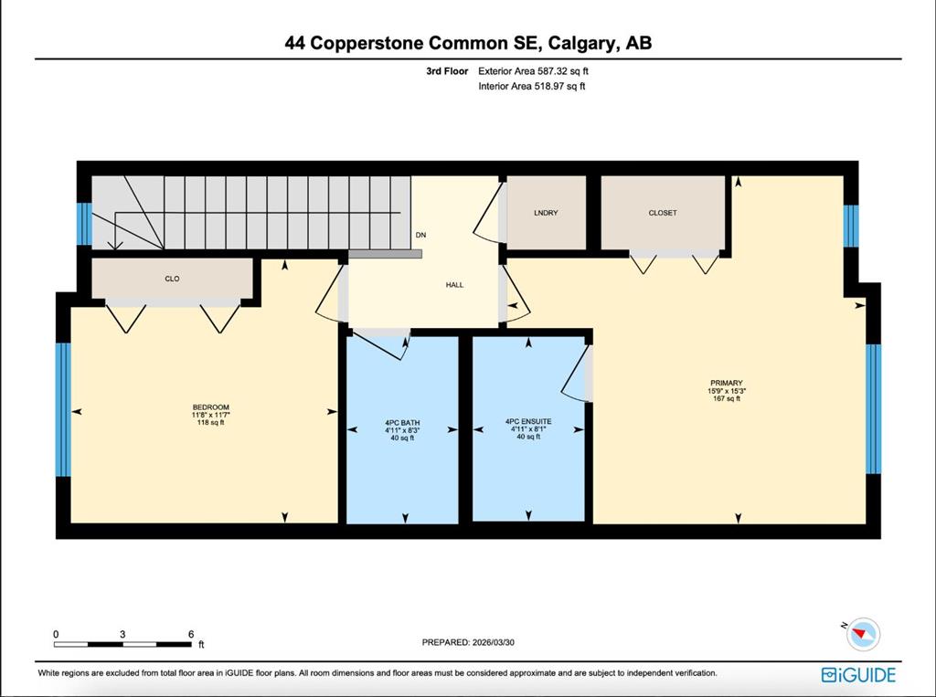 Pull up and you've got your own garage door and driveway. The complex is a clean modern townhouse in red and grey, well kept, and your unit sits at the entry level with the garage below. Coming in through the mud room, it's wide and bright with real separation between the garage and the living space above. Stairs take you straight up to the main floor where the kitchen, dining, and living all flow together with west-facing windows pulling light across the whole floor. Dark laminate runs throughout against white walls and 9-foot ceilings. The kitchen has white upper cabinets, a long island with seating, subway tile backsplash, and stainless steel appliances including a gas range. There's a pantry closet off the kitchen with full wire shelving floor to ceiling, more storage than most kitchens this size offer. Dining fits a round table for four right beside the kitchen and the living room handles a full sofa setup with room to spare. Off the back is a deck with open sky and unobstructed views of the reserve, no neighbours behind you. Heading upstairs, the primary bedroom fits a queen comfortably with room on both sides, a walk-in closet with rod and shelving, and a 4-piece ensuite with tub and window. The second bedroom is a solid size, also fits a queen, with two windows looking out to the back, and its own separate 4-piece bathroom right next door. Stacked front-load washer and dryer are in their own closet on this level. Down to the lower level, the rec room has drywall, built-in shelving along one wall, and a walkout to the fenced backyard and the Rotary/Mattamy Greenway path directly behind the property. Ceiling is unfinished but the space is fully usable right now. Garage access is on this level, single stall, drywalled, with room for storage alongside the vehicle. The balcony and the yard both look out over open reserve with nothing blocking the horizon. For a townhouse at this price it's a hard setup to find.