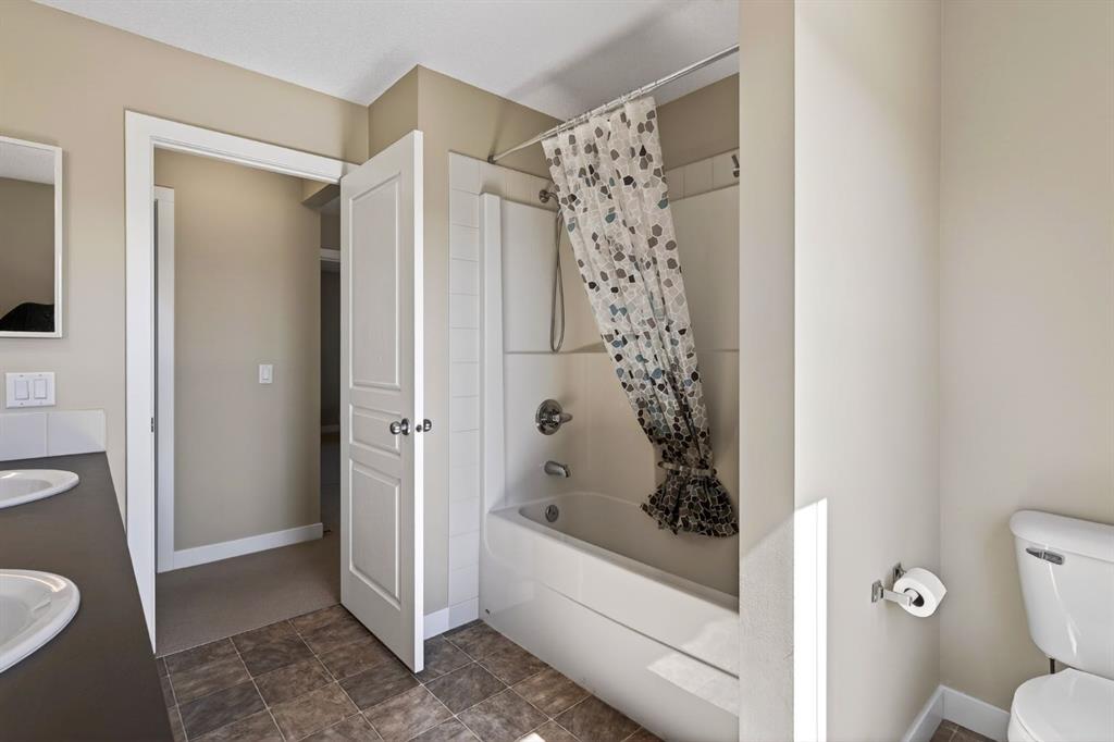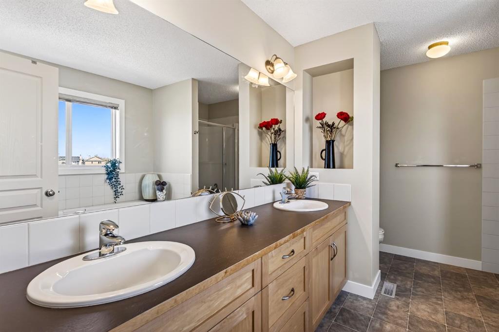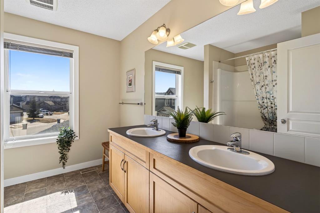 Upstairs you’ll find two spacious kids’ bedrooms, a main bathroom with double sinks, and a primary retreat that easily fits a king bed. The ensuite features double vanities, a large soaker tub with a view, and a separate shower.