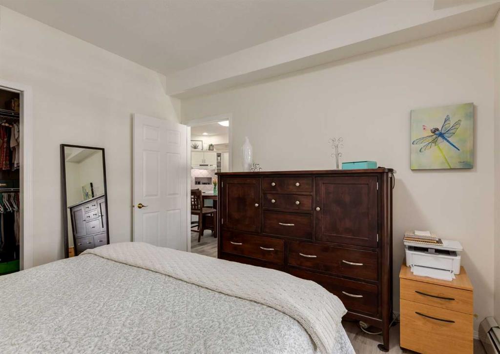 Rare opportunity to own in the highly sought-after Sierras of Tuscany, a vibrant 40+ adult living community offering a true resort-style lifestyle. This immaculate one-bedroom unit presents an exceptional entry price point and the convenience of condo living at its finest—no need to leave the building with the incredible amenities at your doorstep. The bright, open-concept layout features luxury vinyl plank flooring throughout, California shutters, and a cozy corner fireplace that anchors the living space. The well-designed kitchen flows seamlessly into the dining and living areas, creating an inviting space to relax or entertain. Enjoy year-round use of the fully enclosed balcony/sunroom, perfect for morning coffee or quiet evenings. The spacious primary bedroom includes a walk-in closet, while the in-suite laundry and storage room add everyday functionality. Heated underground parking and a large separate storage unit are also included. This well-managed building is known for its unmatched amenities, including an indoor saltwater pool and hot tub, fitness centre, bowling alley, billiards and games room, movie theatre, library, craft and woodworking rooms, Panorama Room/ballroom/party room, guest suites, and even a car wash. Ideally located just steps to green space and the Tuscany LRT station, with quick access to Crowchild Trail and Stoney Trail, plus nearby shopping and amenities. Condo fees include all utilities—heat, water, sewer, and electricity—offering outstanding value and peace of mind. An immaculate, move-in-ready home in one of NW Calgary’s most desirable adult communities—this is a must see.