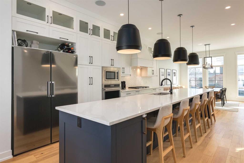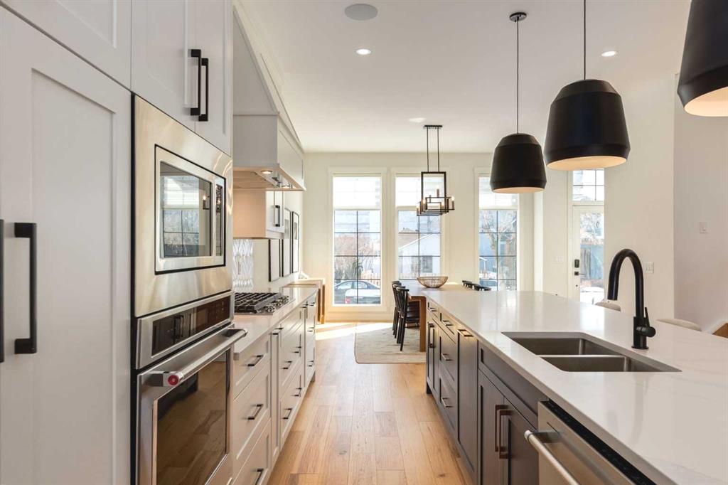 The fully finished lower level offers a large family room with a wet bar, built-in shelving, a 4-piece bath, and a spacious 4th bedroom. Notable extras include a $25K solar energy investment, Central A/C, built-in speakers, R/I central vac with automatic dustpan, and a heated, oversize garage with epoxy floors and a paved alley. Just steps from schools and the vibrant Kensington district, this is sophisticated living without compromise.