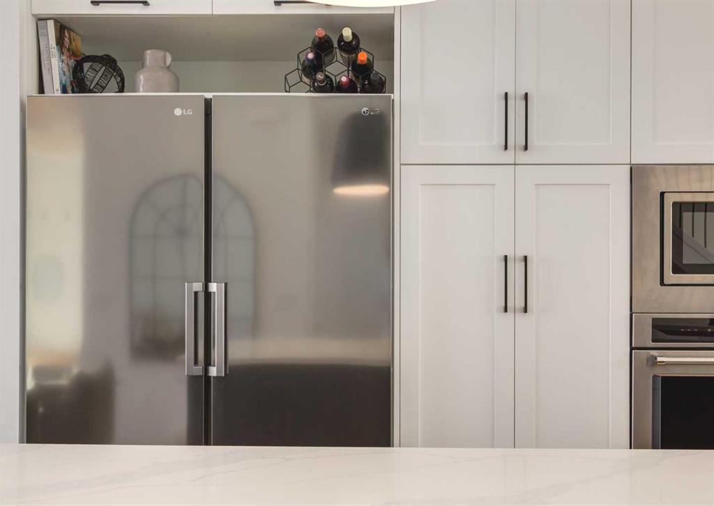 The interior is defined by extraordinary volume, with 10’ and 12’ ceilings on the main floor, 9' upstairs, and 9’ in the lower level, enhancing the home’s sense of limitless space and light. The kitchen is a masterpiece of design, anchored by a luxurious 16’ quartz island, full-height cabinetry with premium integrated appliances, in-cabinet lighting, a 5-burner gas cooktop, and a 48” side-by-side refrigerator.