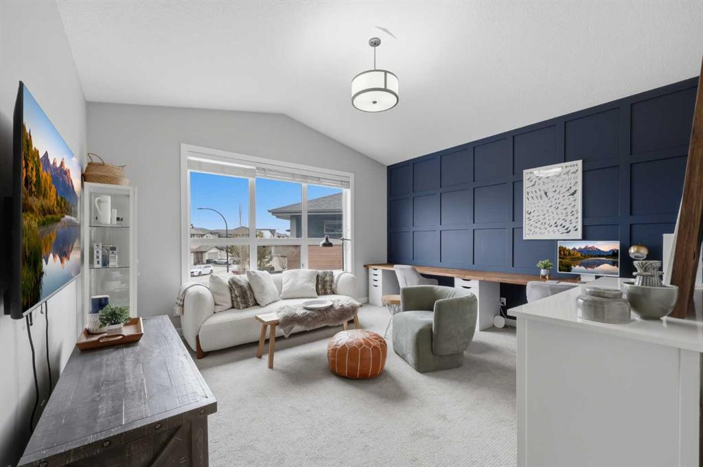 Welcome to one of Walden's premier addresses, offering more than 3,000 sq ft of thoughtfully planned living space. Every detail has been carefully elevated beyond builder standards. Positioned on a rare pie-shaped lot at the end of a quiet cul-de-sac and backing onto expansive green space, this home offers privacy, unobstructed views, and a strong sense of community in an exceptional setting. Natural light fills the main floor, highlighting the contemporary two-toned kitchen with premium appliances, quartz countertops, a composite granite sink, designer backsplash, and a spacious pantry for simple organization. The living room is anchored by a cozy gas fireplace and features bright south-facing windows. The dining area benefits from a custom feature wall as an eye-catching centrepiece and easy access to the elevated deck with peaceful views. The entry provides built-in storage and hooks to keep everyday life organized. A main floor half bath and a versatile room with built-in shelving offer flexibility, ideal for a private home office or study. Upgraded pot lights and a curated lighting package create a warm, polished ambiance throughout. A wired Sonos Home sound system delivers premium audio throughout the home, perfect for entertaining or everyday enjoyment. Upstairs, the primary bedroom features a large 4pc ensuite with quartz countertops, upgraded fixtures, and a walk-in closet. The bonus/family room impresses with large windows, a custom built-in desk with drawers, and a decorative wood feature wall, perfect for media, play, or work. Two additional spacious bedrooms and a full 4pc bathroom provide comfort for your entire family. The upper laundry room includes shelving for convenient storage and easy routines. The fully developed walk-out basement offers flexibility, with a generous bedroom, a full 4pc bathroom, and direct access to a concrete patio and beautifully landscaped, south-facing yard. The pie-shaped lot ensures the space is utilized where it matters most, resulting in a private backyard retreat with unobstructed field views. A triple tandem garage is a rare asset in Walden, perfect for extra vehicles, additional storage, or a dedicated workshop. Full central A/C and Wi-Fi-controlled LED holiday lighting on the home's front add seasonal charm. Tucked at the end of a quiet cul-de-sac, this home is an exceptionally rare property in an established, amenity-rich community. This is the one discriminating buyers have been waiting for.