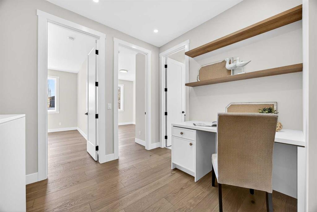 Set on a beautiful tree-lined street, this newly constructed home blends modern design with a thoughtful connection to the outdoors—and is just steps to Confederation Park’s green spaces and pathway system. Fully Developed and offering 2,900+ square feet of total space, this home offers exceptional style and functionality. Designed with the family in mind. Hardwood floors, 9’ Ceilings and large windows span the spacious Main Floor living areas flooding it with natural light. The Front Entry is inviting with built-in Bench and large Closet. The Dining Room offers an exceptional space for hosting and gathering with ease. The Kitchen offers Custom Cabinetry with wood & gold accents, open shelving, large Centre Island with Honed Quartz Countertops, Undermount Silgranit Sink, built-in Garbage and Recycling Drawer, and Appliances to include an Integrated Panel Front Refrigerator & Dishwasher, built-in Microwave, Wall Oven, and Gas Cooktop surrounded by custom Spice Rack & Utensil Storage. A Walk-Through Pantry provides food & baking storage with direct access to the Back Entry, with additional Closet & built-in Bench. Step onto the expansive, sunny South facing Back Deck spacious enough for added outdoor Living & Dining, with Gas BBQ hook-up & yard to play. Fenced & landscaped with grass, rock, and a concrete walkway leading to the Detached Double Garage. A 6’ Linear Fireplace in the Living Room with mantel & open shelving offers an inviting space to relax in conversation or watch the game. A Powder Room completes this level. Ascend to the Upper Floor where a light-filled Landing and built-in Workspace is framed by 9’ Ceilings and Hardwood Floors throughout. The Primary Suite is a true retreat, showcasing a Walk-In Closet and 5 Piece En-Suite with floating cabinetry, gorgeous Shower with custom Bench seating and a freestanding Soaker Tub, for a true spa-like experience at home. The wide Hallway leads back to Bedrooms 2 & 3. All Closets have built-in shelving. Venture downstairs to the Fully Developed Basement, also with 9' Ceilings, to find a large REC/Family Room, completely outfitted Storage Room, Bedroom 4, another Full Bathroom & Utility Room offering even more Storage space. Air Conditioning included. Garage is insulated, drywalled & painted. Mount Pleasant is consistently recognized as one of Calgary’s most desirable inner-city communities, known for its blend of modern infills and charming homes. Attracting urban buyers with its tree-lined streets and strong sense of community, residents enjoy convenient access to local amenities like the North Mount Pleasant Arts Centre, Confederation Park, and reputable schools, along with close proximity to Downtown. Outdoor enthusiasts will appreciate the easy access to pathways, green spaces, and recreational facilities including the Mount Pleasant Sportsplex & Outdoor Swimming Pool, while everyday essentials are just moments away. Move-in ready with New Home Warranty. Booking your showing today.