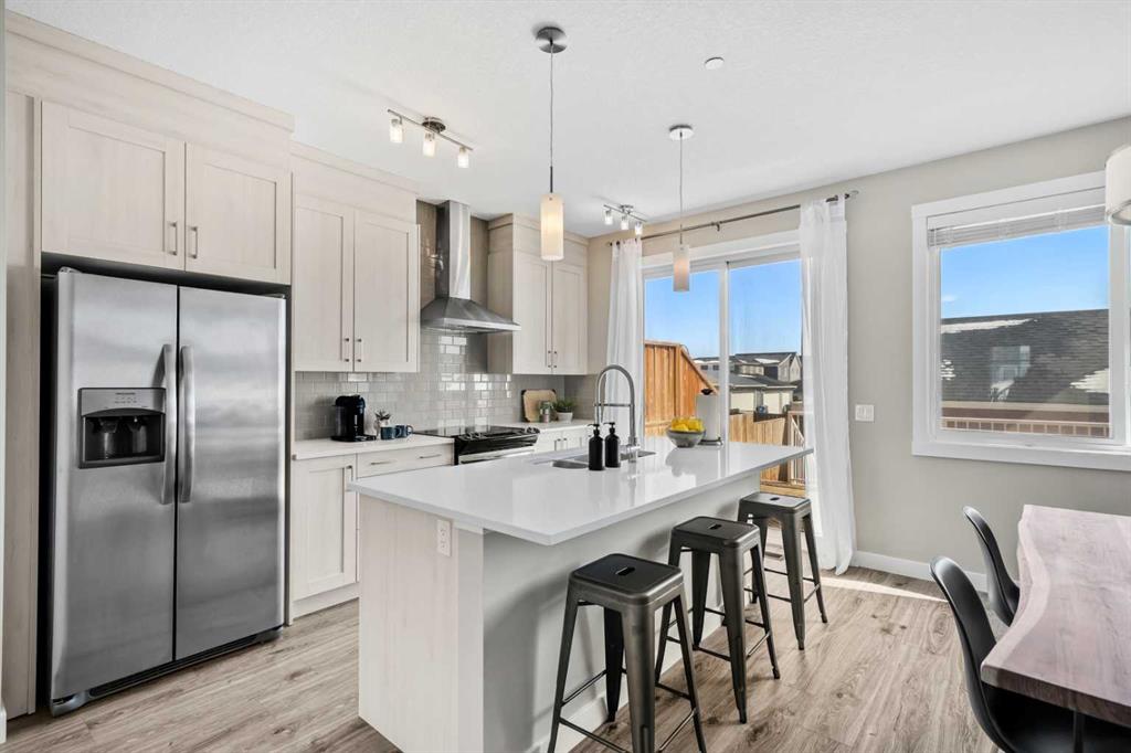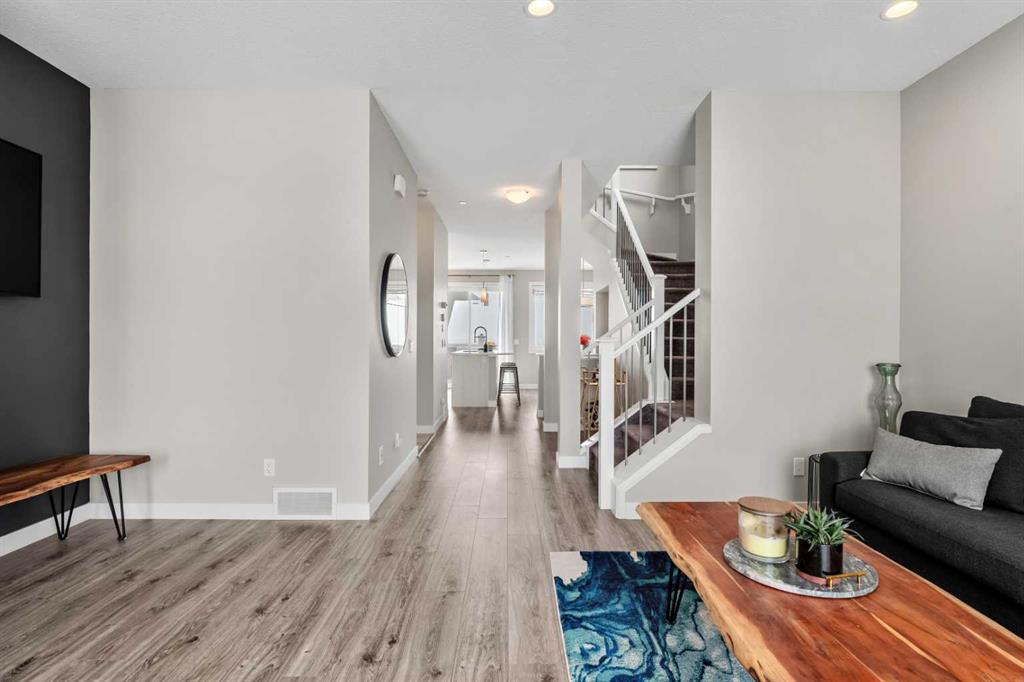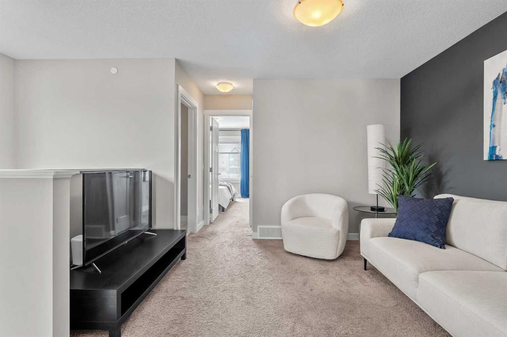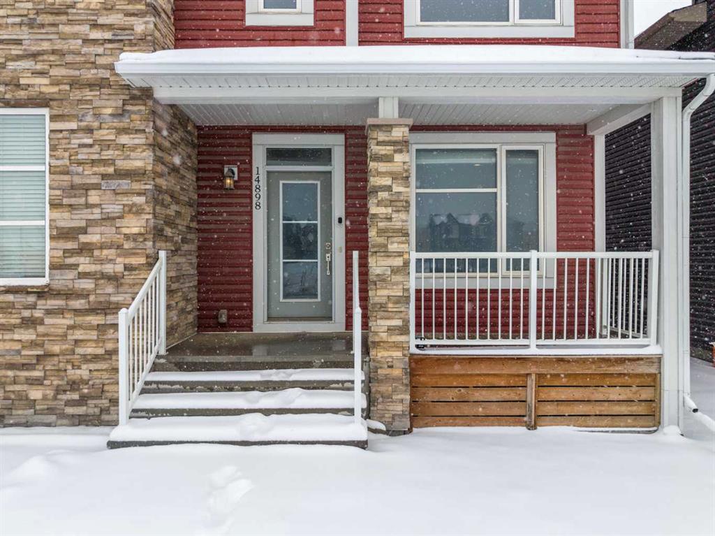 OPEN HOUSE! SATURDAY, APRIL 11TH FROM 1-3PM! Welcome to 14898 1 St NE! We are so excited to present a truly move-in ready home in the family friendly community of Livingston. This home checks off ALL of the boxes, whether you're a first-time homebuyer, an investor or a family searching for more space to grow. You'll appreciate the front porch that welcomes you into this home. Upon entering, you'll immediately notice the abundance of natural sunlight this home offers. The living room is spacious, enhanced by the high ceilings and flows seamlessly into the rest of the main floor. The kitchen is truly the highlight of the home with ceiling-height cabinetry, stainless steel appliances, granite countertops and a large pantry. The sliding glass doors lead out to the back deck creating an ideal environment for hosting. There is plenty of room for a large six person table as well as space for bar stools for those informal meals. A two piece powder room and a side SEPARATE ENTRANCE complete this floor. Upstairs, you’re greeted by a bonus room, an exceptional feature and a rare find for a semi-detached home. It is ideal for a home office, media room or play room. The primary bedroom is perfectly positioned at the front of the home, where west exposure brings in beautiful natural light year-round. It’s complemented by a spacious ensuite with a modern vanity, walk-in glass shower and a generous walk-in closet. Two additional well-sized bedrooms, a four-piece bathroom and convenient upper-level laundry complete this floor. The backyard is a dream with a beautiful deck, including built-in seating ideal for hosting guests. The oversized double detached garage provides ample parking and storage, along with an outlet for electric vehicle charging. The basement is unfinished, offering all kinds of future opportunities for development especially with a side entrance already in place. This home offers the benefit of living in a well maintained, turnkey home without the hassle of worrying about landscaping, fencing or building a garage. Located in the vibrant and growing community of Livingston, this home offers the perfect blend of modern design and everyday functionality. Enjoy access to the impressive Livingston Hub through your HOA, nearby parks and scenic pathways. All while being just minutes from Stoney Trail making commuting in and out of the city a breeze. Call for a private viewing!