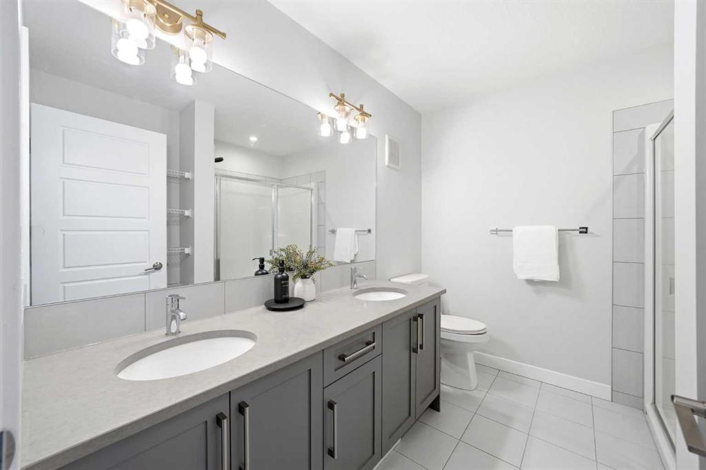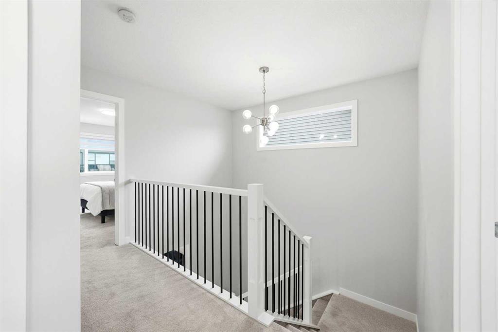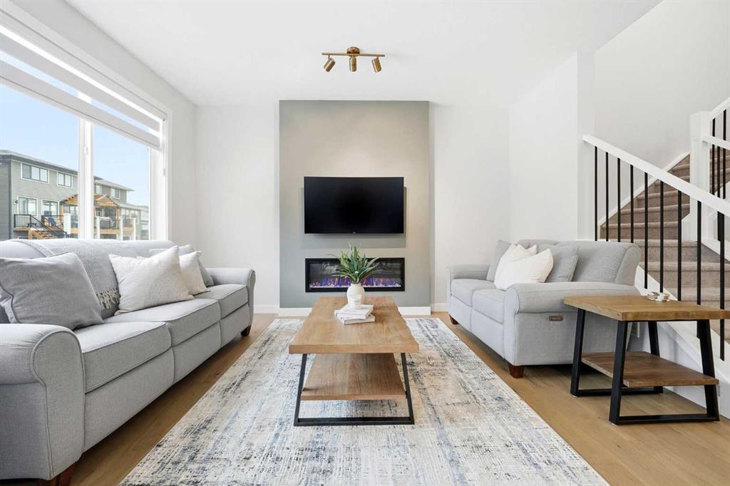 This duplex-style property is a rare offering in the elevated community of Precedence in Cochrane. Surrounded by stunning hillside views and kilometres of scenic walking paths, this neighbourhood seamlessly connects you to nature—leading throughout the community, down to the winding Bow River, and over to the popular Spray Lakes Recreation Centre. This location truly has it all. Offering tremendous value, this home is ideal for first-time buyers or those looking to downsize, complete with the convenience of a double attached garage. Step inside and immediately appreciate the gorgeous engineered hardwood flooring that flows throughout the main floor. The kitchen is bright, modern, and timeless, featuring crisp white cabinetry, stainless steel appliances, quartz countertops, a large island perfect for entertaining, and a walk-in pantry providing ample storage. The living room is anchored by a stylish electric fireplace, creating a warm and contemporary focal point. With plenty of space for family gatherings, the dining room also offers direct access to the large west-facing backyard. Outside, the newly built oversized composite deck is a standout feature—designed for durability and low maintenance. The yard has been thoughtfully finished with low-maintenance rock, allowing you to relax and enjoy the outdoor space all season long. A stylish open railing leads you to the upper level, where thoughtful design continues with a walk-in laundry room, two additional bedrooms or office spaces, and a full bathroom. The primary bedroom serves as a peaceful retreat, perfect for unwinding at the end of the day. It is complemented by a luxurious ensuite featuring dual sinks, quartz countertops, a spacious shower, and additional shelving, while a walk-in closet completes this well-appointed space. This home is truly turn-key, complete with custom window coverings and wand-controlled blinds throughout. The lower level is undeveloped and ready for your future vision, with a bathroom rough-in already in place. Don’t miss your opportunity to own this beautiful home in one of Cochrane’s most desirable communities—schedule your showing today!