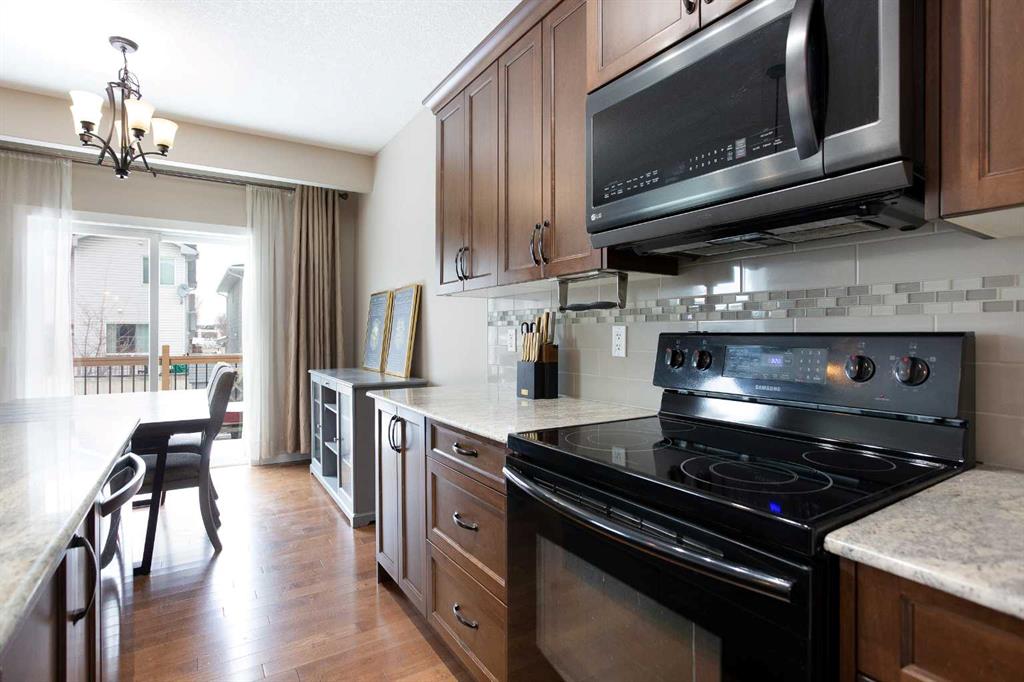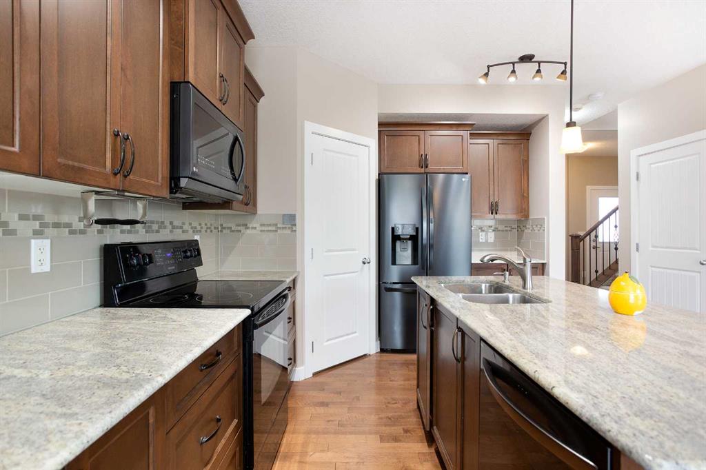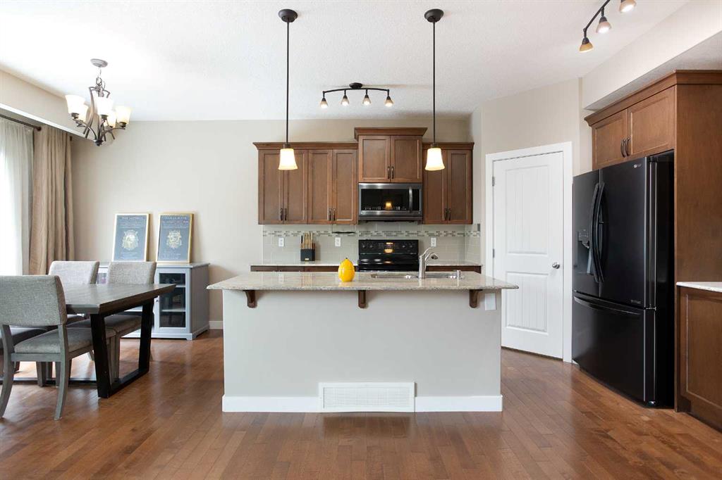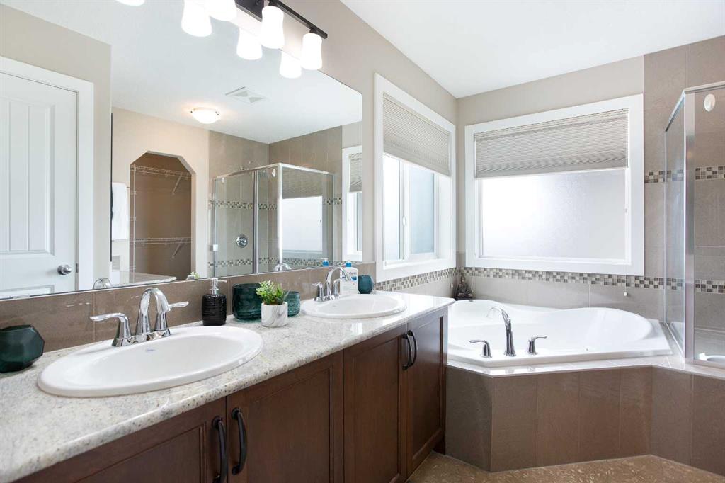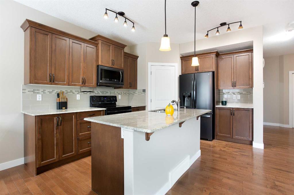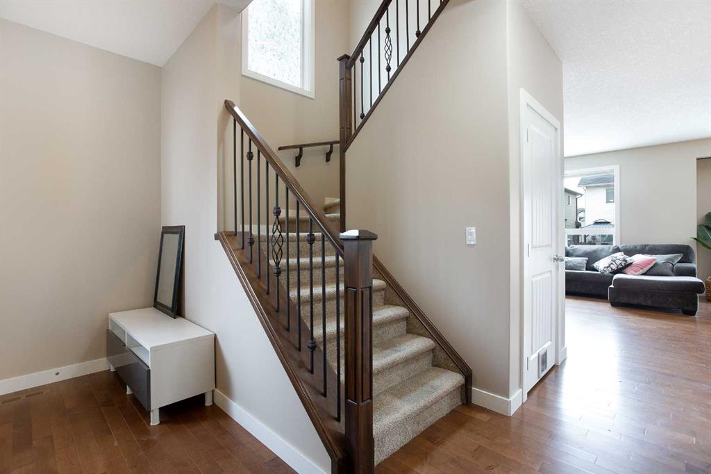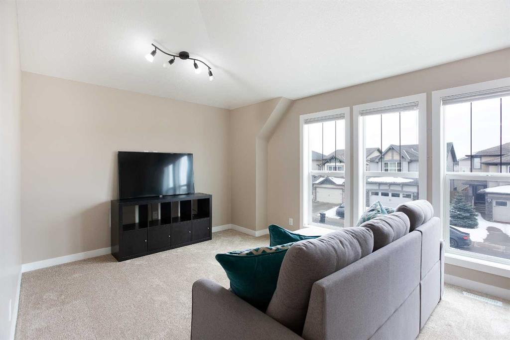 *** OPEN HOUSE SATURDAY APRIL 11TH: 2:00 PM - 4:00 PM *** Welcome to this stunning family retreat in the highly desirable community of Morningside, where thoughtful design meets everyday luxury. Offering 2,517 square feet of immaculately maintained living space, this 3-bedroom, 3.5-bathroom home greets you with a charming front porch and an expansive foyer that opens into a seamless, light-filled layout. The main level is bathed in a serene, neutral palette, perfectly complemented by nine-foot ceilings and the sophisticated glow of gleaming hardwood floors. The living room invites you to unwind beside a beautiful corner gas fireplace, elegantly finished with a classic mantle and stone facing. This space flows effortlessly into a chef’s dream kitchen, where style meets high-end functionality. With upgraded black and stainless steel appliances, sleek granite countertops and premium soft-close cabinetry surround a massive central island—the perfect hub for morning coffee or casual entertaining. Storage is effortless thanks to the walk-through pantry, which provides convenient access to the mudroom and the double attached garage. Nearby, the dining area offers a versatile setting for everything from intimate family dinners to large holiday gatherings, with direct access to your private outdoor sanctuary. Ascending the widened staircase with its elegant wrought iron spindles, you’ll discover an upper level designed for modern comfort. The primary suite serves as a true sanctuary, boasting a spa-like five-piece ensuite complete with dual vanities, a deep corner soaker tub for luxurious relaxation, and a separate walk-in shower. Two additional generously sized bedrooms share a bright four-piece bathroom, while a dedicated laundry room with a Brand new Washer and Dryer, adds a layer of daily convenience. The vaulted bonus room serves as the home’s crowning jewel; here, massive floor-to-ceiling windows flood the space with natural light, offering a perfect setting for a home theater or play area. The experience continues in the fully finished basement, which features an enormous family room, an additional three-piece bathroom, and a large storage room. Outdoors, the beautifully landscaped, fully fenced backyard beckons. A gorgeous two-tiered deck stands ready for summer BBQs, overlooking established garden beds that provide a touch of lush privacy. Perfectly situated in a family-centric neighborhood, this home puts you steps away from scenic walking paths, a tranquil pond, and top-tier amenities including schools and shopping. This turn-key masterpiece is more than just a house; it’s the lifestyle you’ve been waiting for. Don’t let this one slip away—schedule your private tour today!