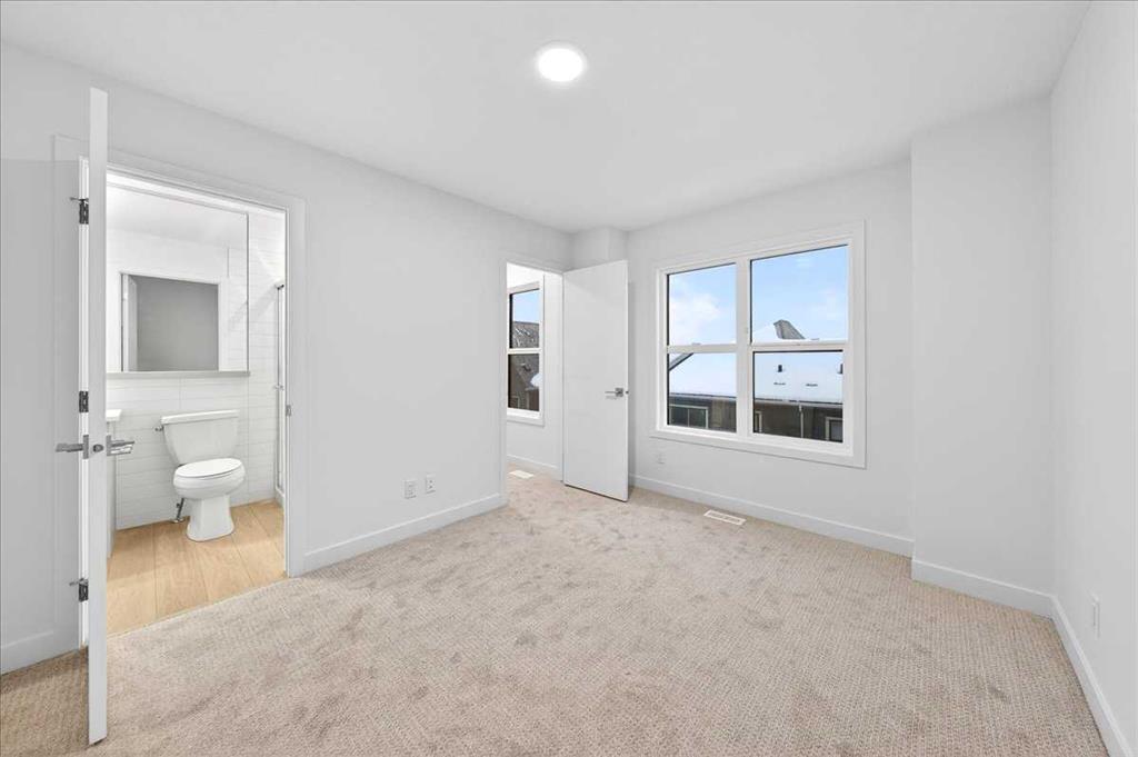 Upstairs, the layout continues to deliver. The primary bedroom is a true retreat, complete with a walk-in closet and private ensuite. A second bedroom—also with a walk-in closet—sits across from a full bath, and upper-floor laundry keeps everything exactly where it should be.